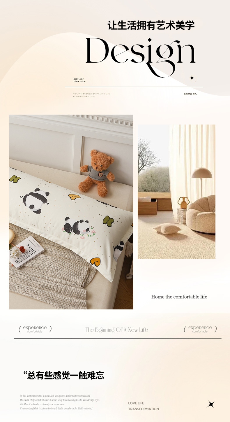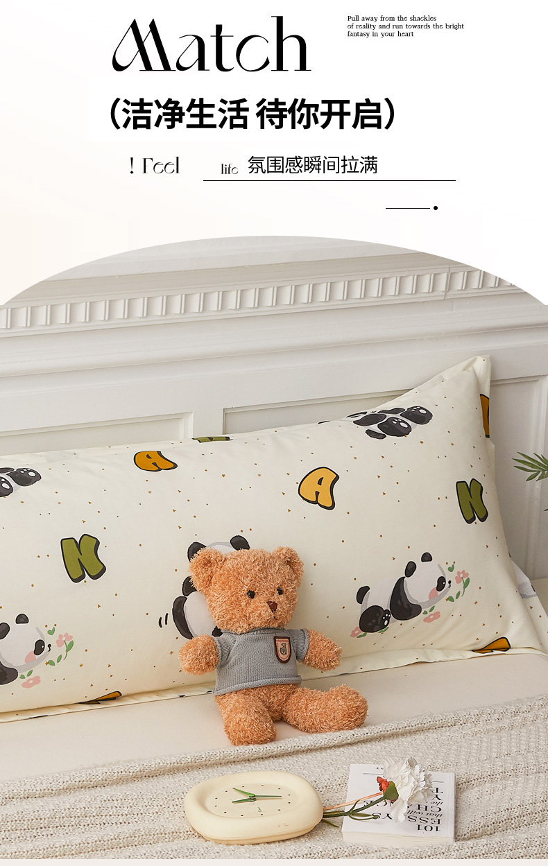 商品名称:翎盈家纺 2025新款纯棉小清新双人枕套 字母熊猫