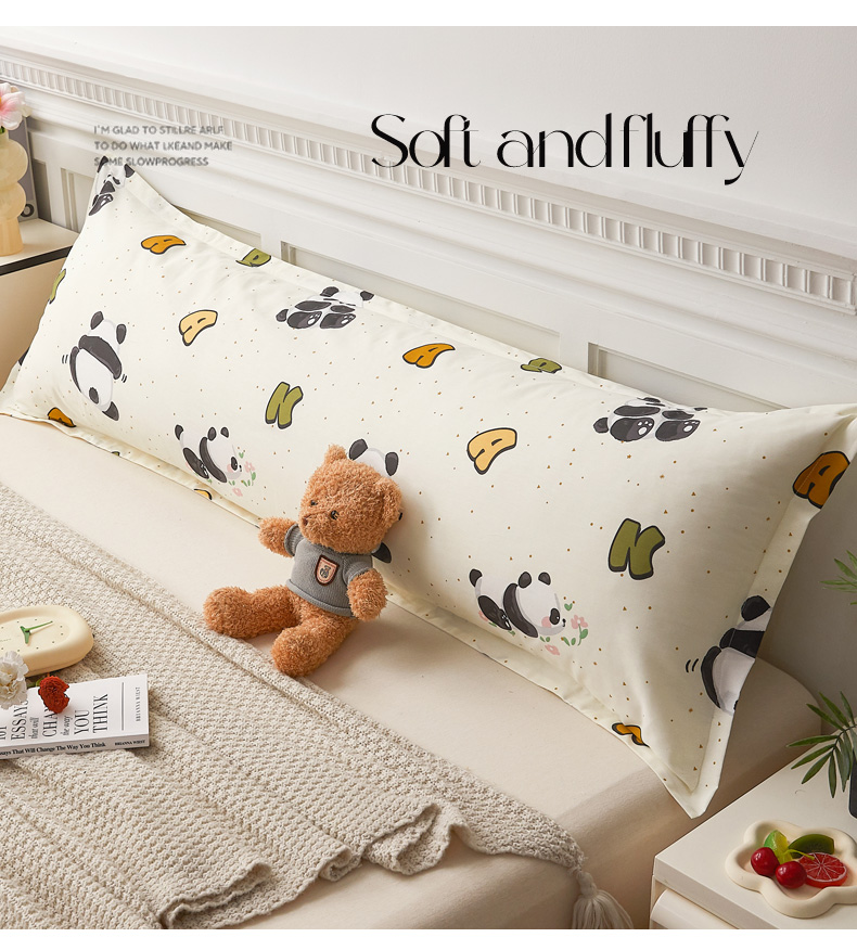 翎盈家纺 2025新款纯棉小清新双人枕套 字母熊猫