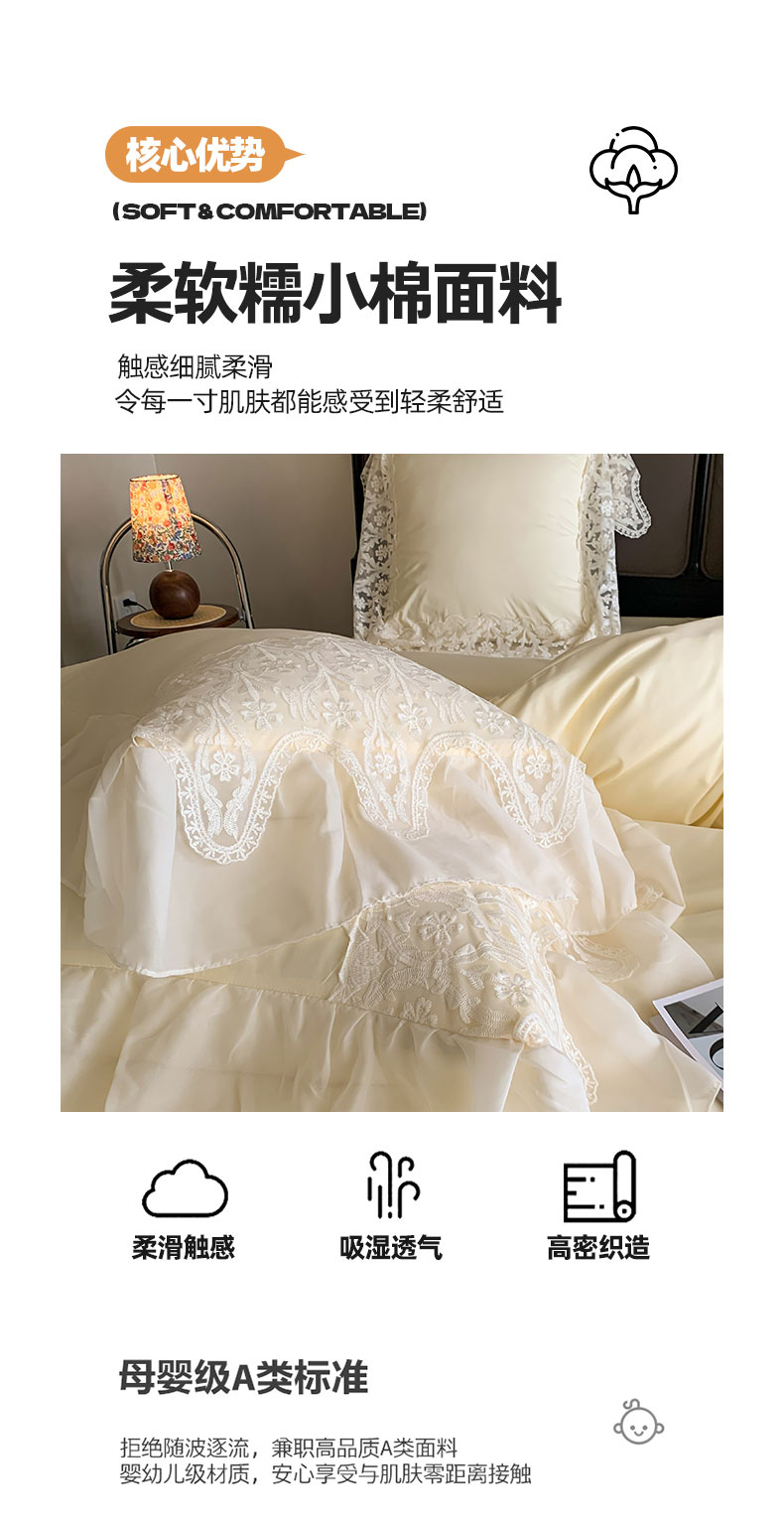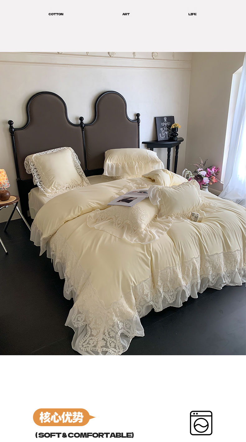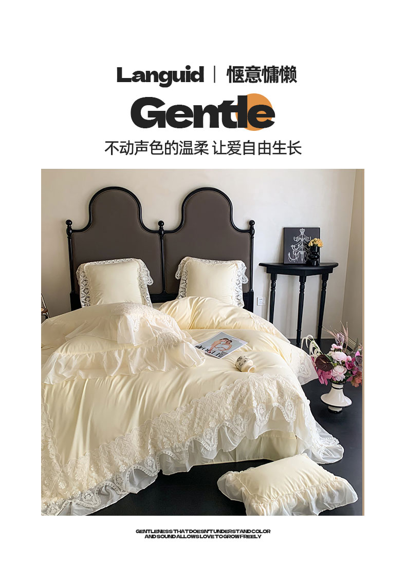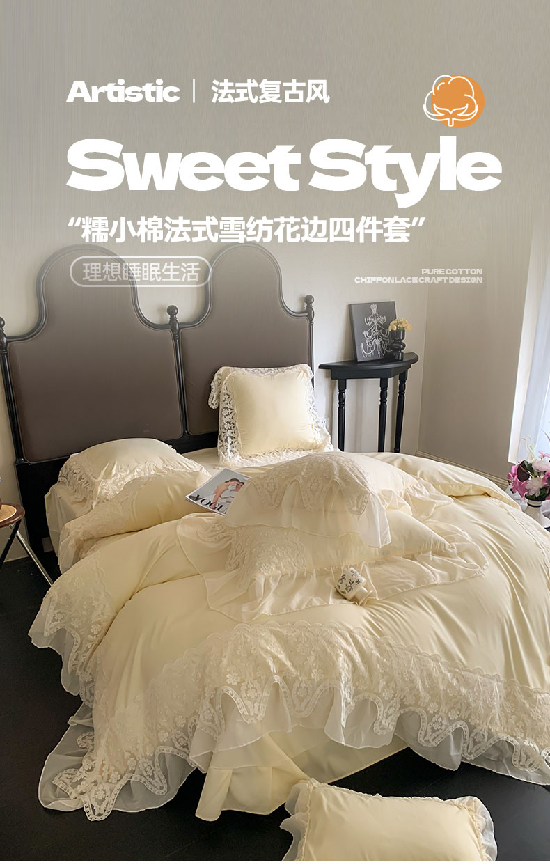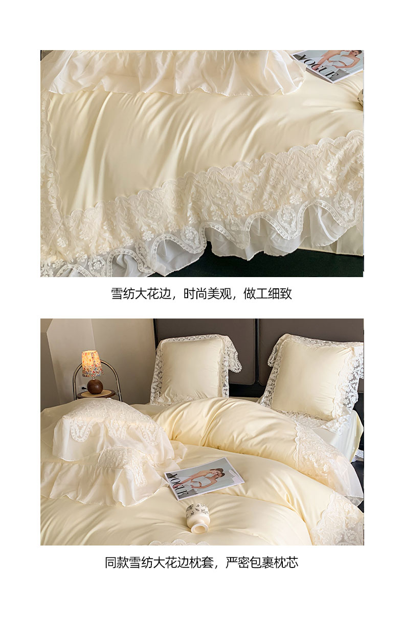 商品名称:吾欢心 2025新款糯小棉法式雪纺花边四件套-巴洛克 巴洛克黄