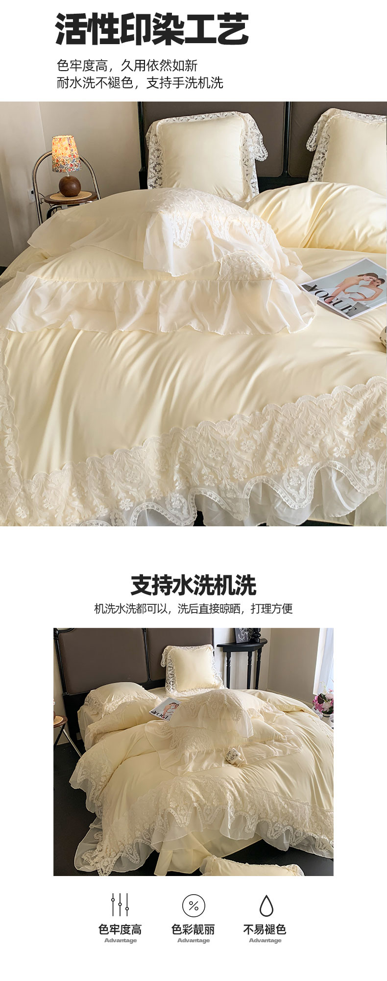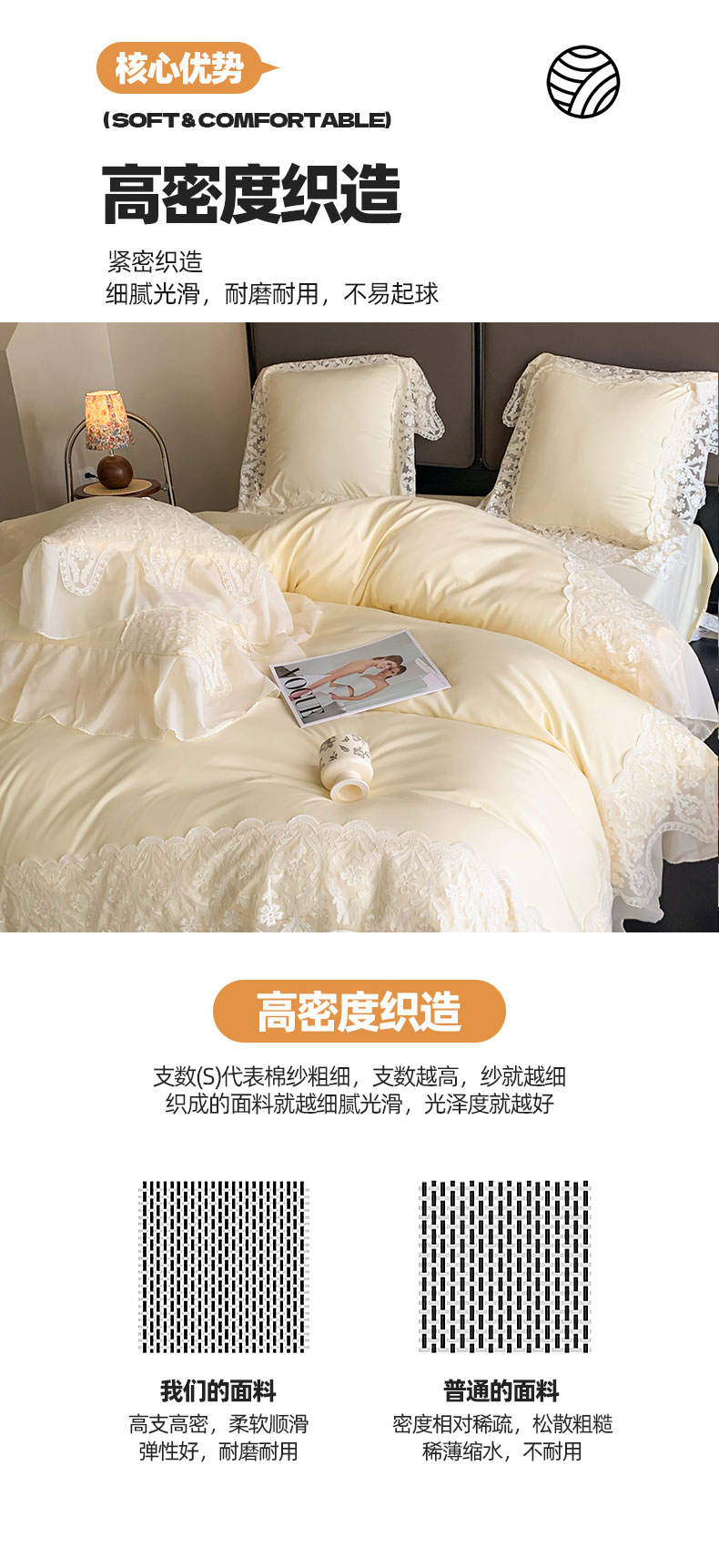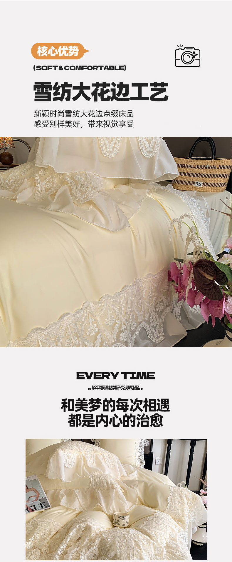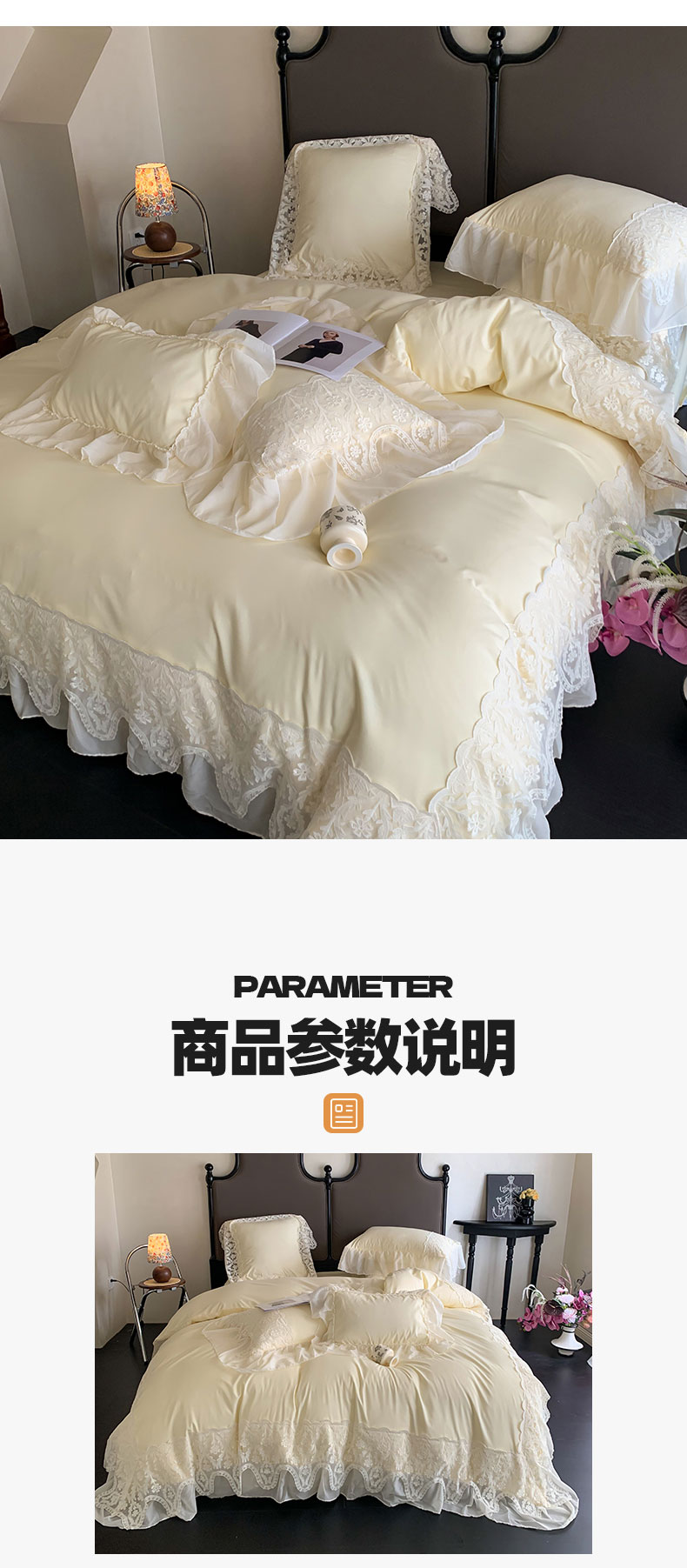 商品名称:吾欢心 2025新款糯小棉法式雪纺花边四件套-巴洛克 巴洛克黄