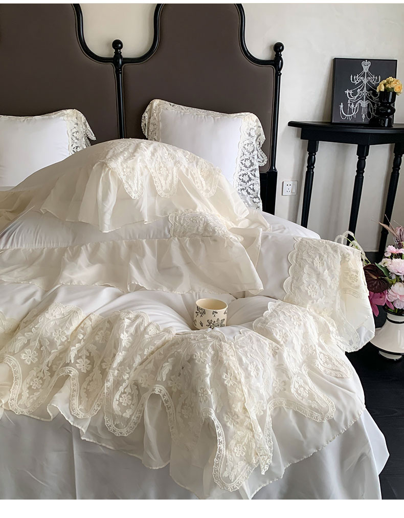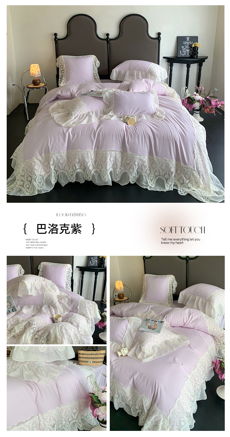 (总)吾欢心 2025秋冬新款加厚雕花绒婴儿绒安娜贝尔系列法式双层花边四件套,安娜贝尔白,安娜贝尔粉,安娜贝尔咖,安娜贝尔蓝,安娜贝尔绿,安娜贝尔紫