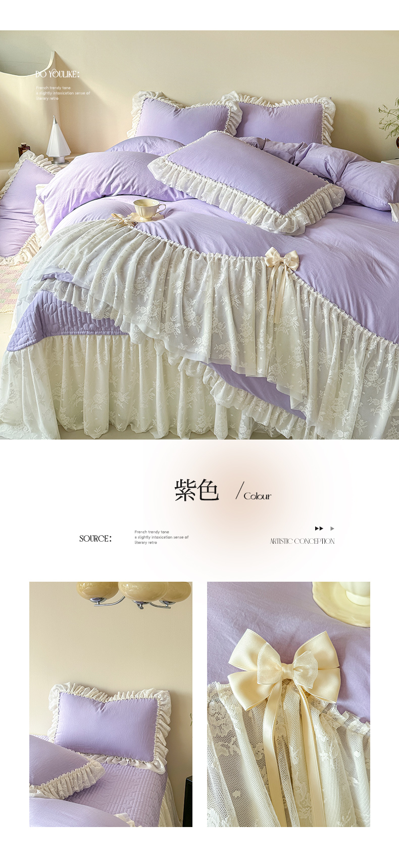 富米莱(原臻工厂)2025新款法式高端白月光水洗棉床盖四件套 紫色