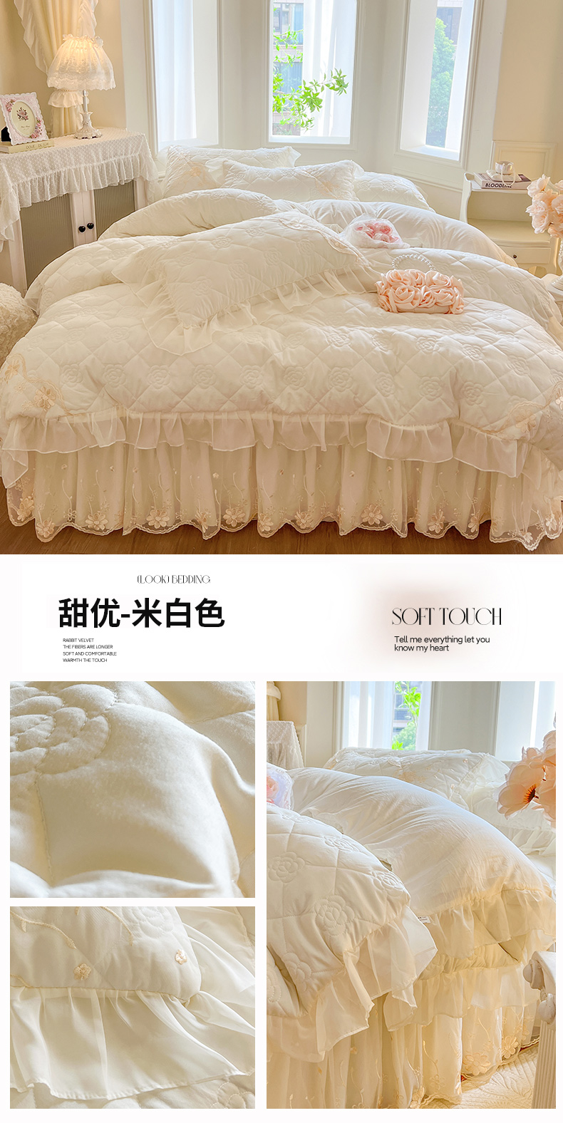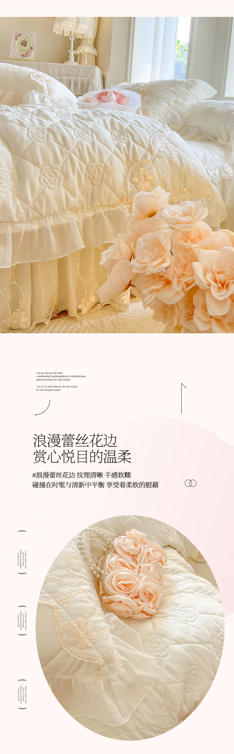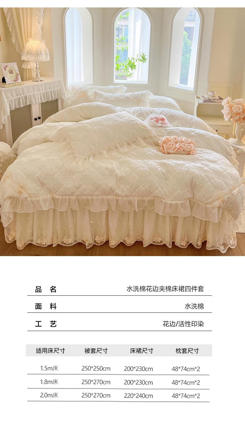 商品名称:瑞宝 2025新款水洗棉花边夹棉床裙甜优系列四件套(供货价+40) 甜优-奶油米
