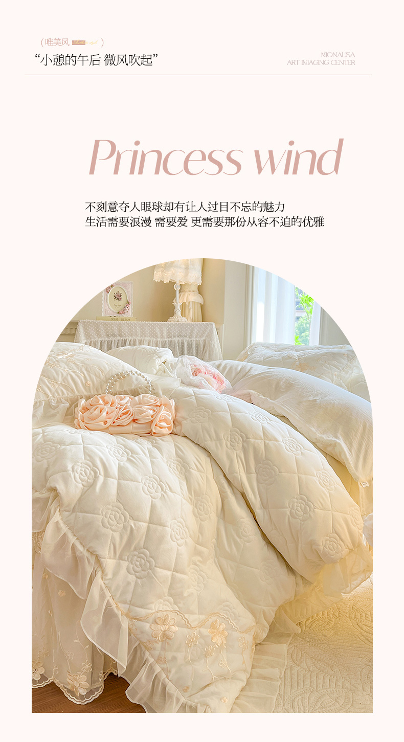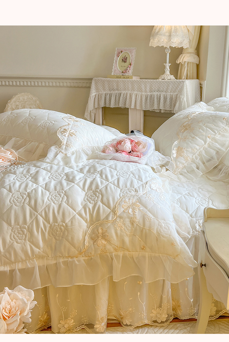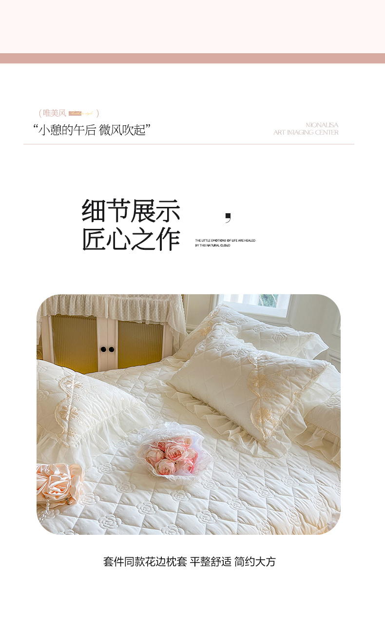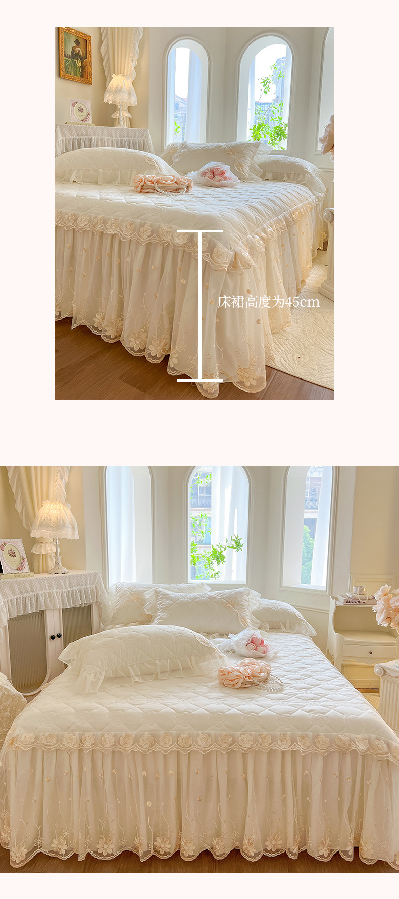 商品名称:瑞宝 2025新款水洗棉花边夹棉床裙甜优系列四件套(供货价+40) 甜优-奶油米