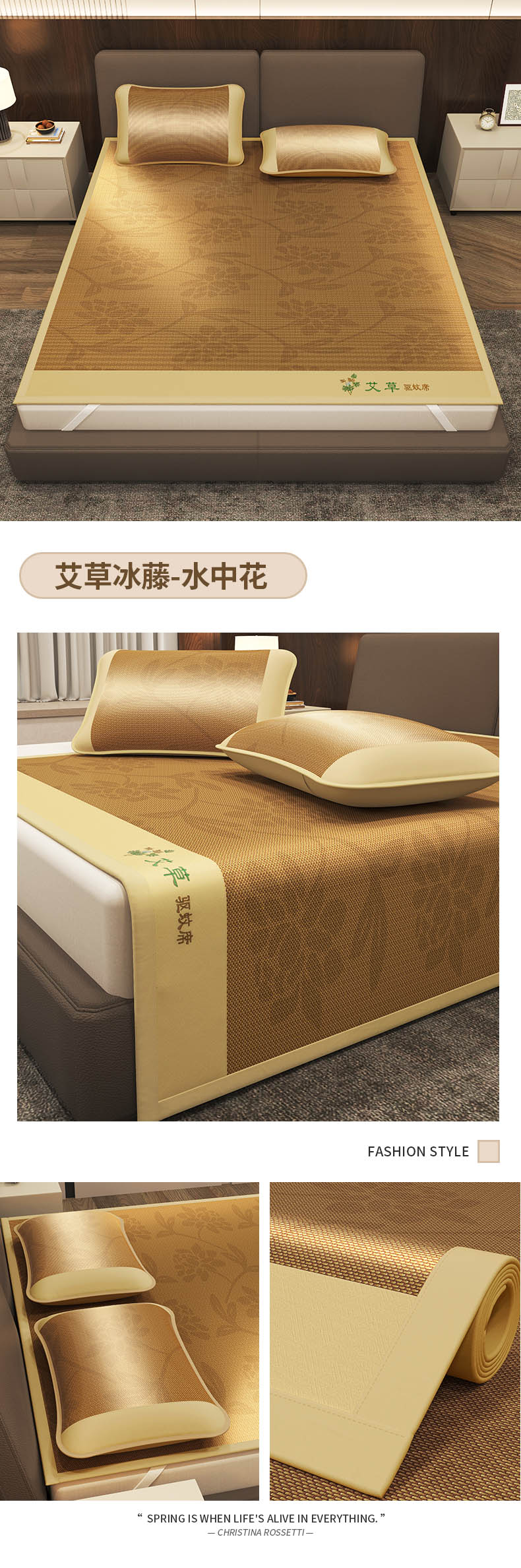 (总)福来临家纺 2025艾草冰藤席 ,步步高,水中花
