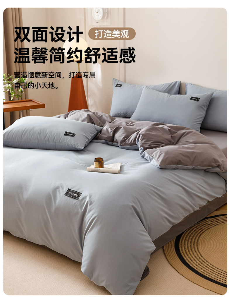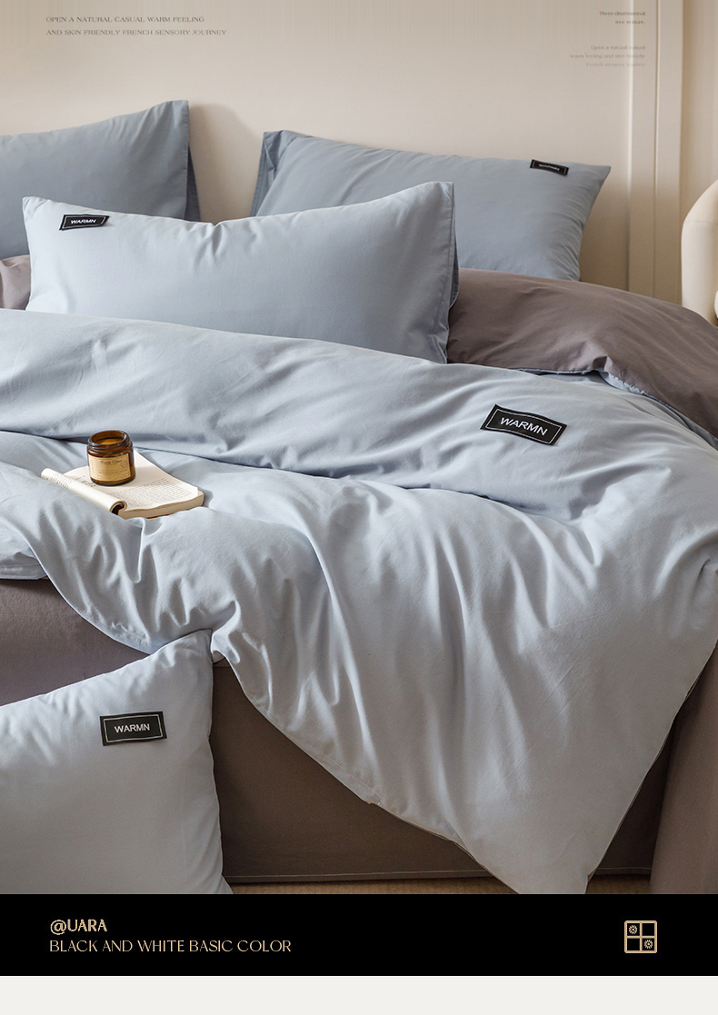 当前位置: 91家纺网 > 商品网购 > 床品套件 > 四件套 > 全棉普通四件套 > 趣色家纺 2025新款全棉双拼纯色四件套 雾霾蓝+浅灰