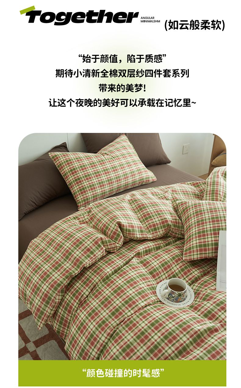 当前位置: 91家纺网 > 商品网购 > 床品套件 > 四件套 > 全棉普通四件套 > 趣色家纺 2025新款A类全棉双层纱印花四件套 安格红