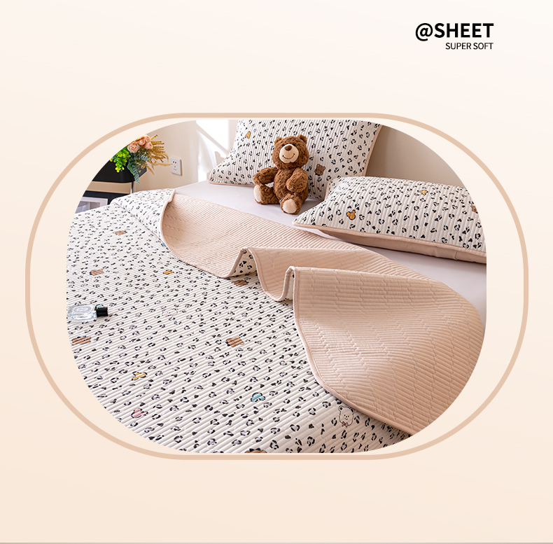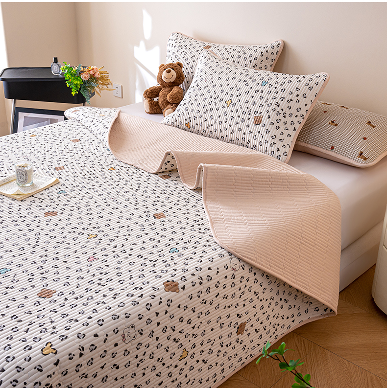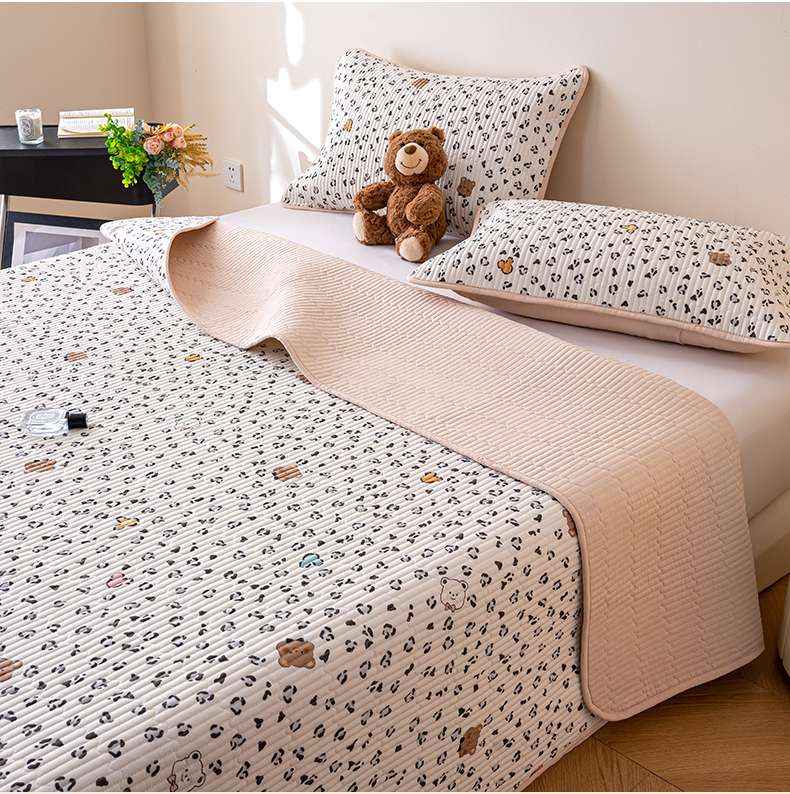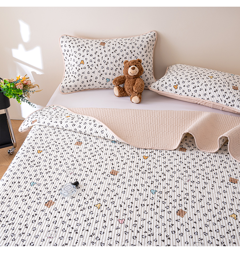 X猫先生 2025新款全棉床盖小清新夹棉水洗炕盖床盖套件-跑量款 豹纹小熊
