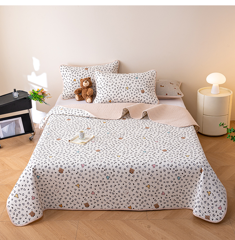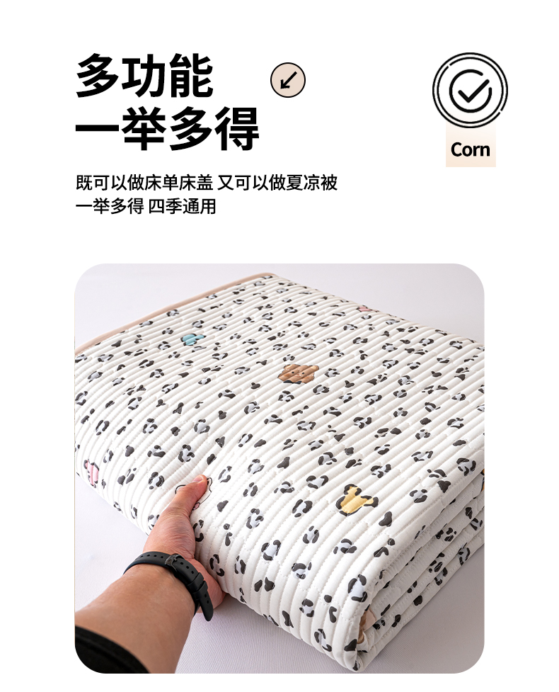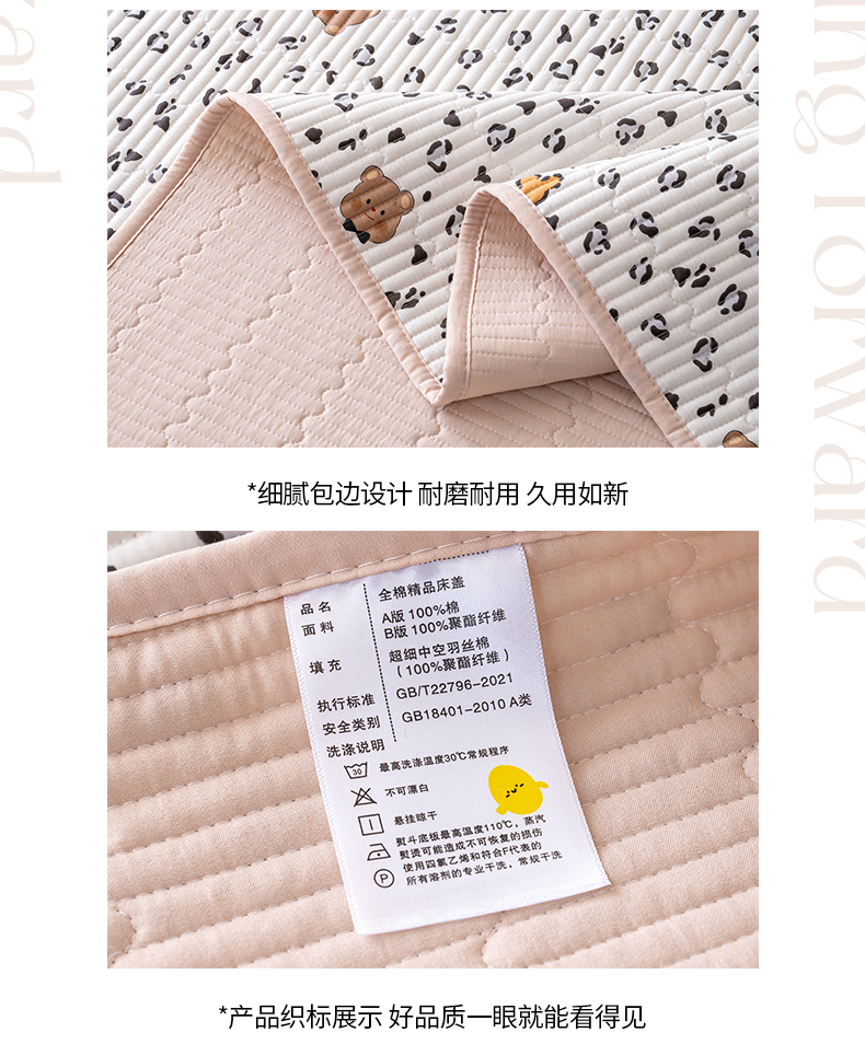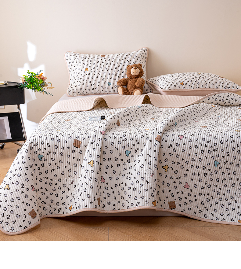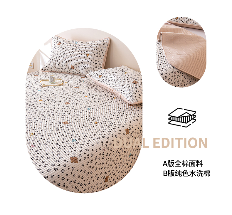 • 91家纺网 家纺一手货源 找家纺 X猫先生 2025新款全棉床盖小清新夹棉水洗炕盖床盖套件-跑量款 豹纹小熊