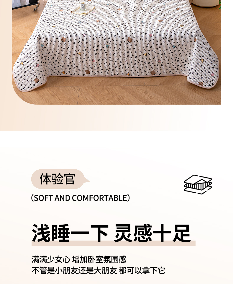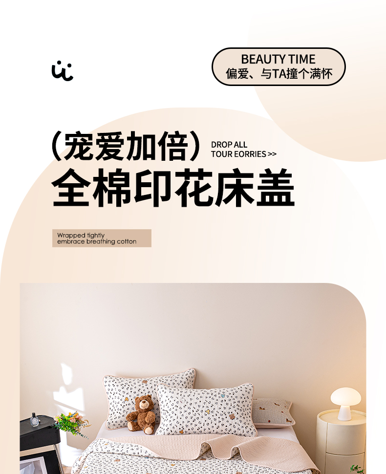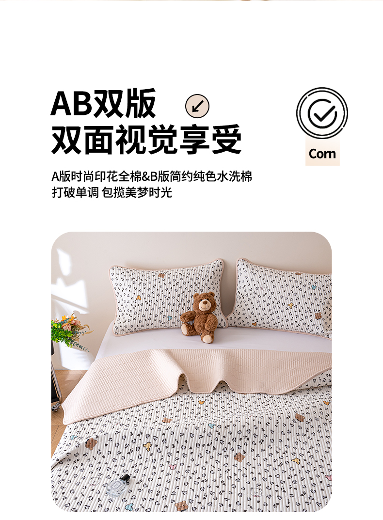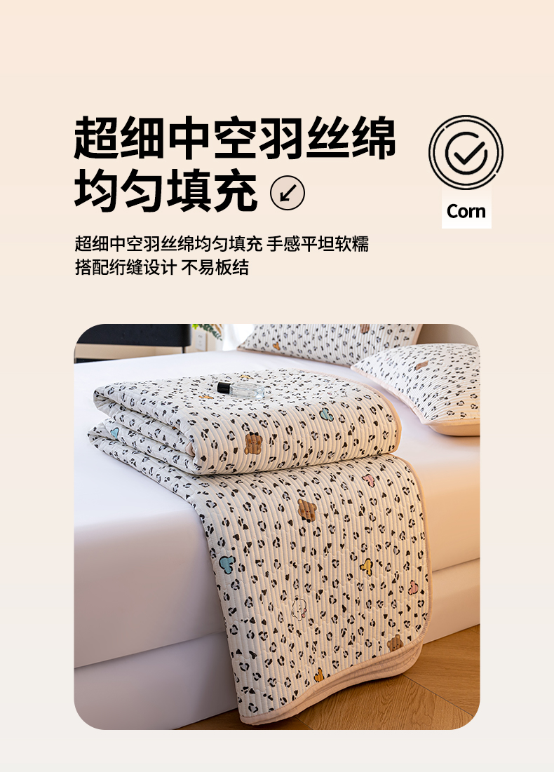 • 91家纺网 家纺一手货源 找家纺 X猫先生 2025新款全棉床盖小清新夹棉水洗炕盖床盖套件-跑量款 豹纹小熊