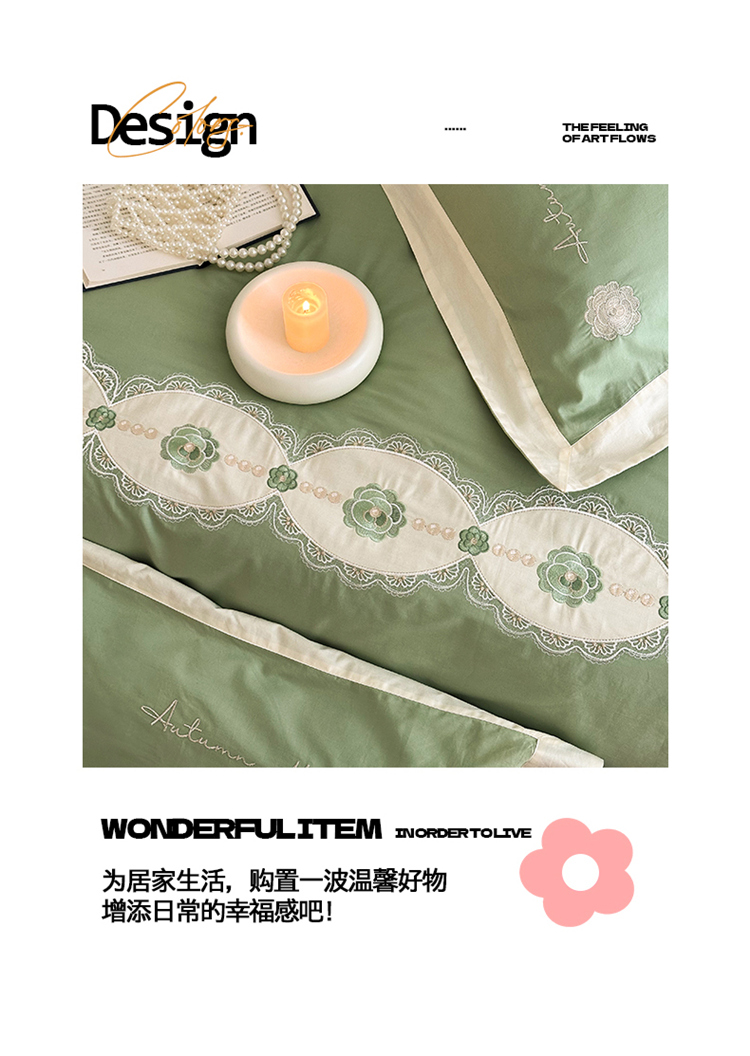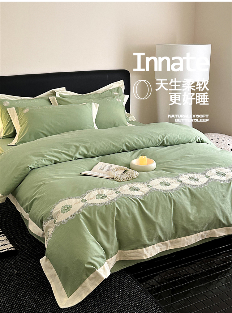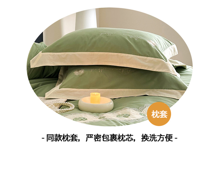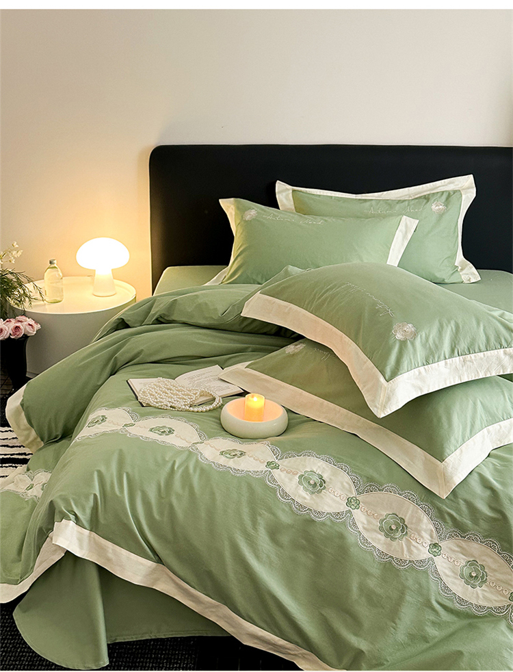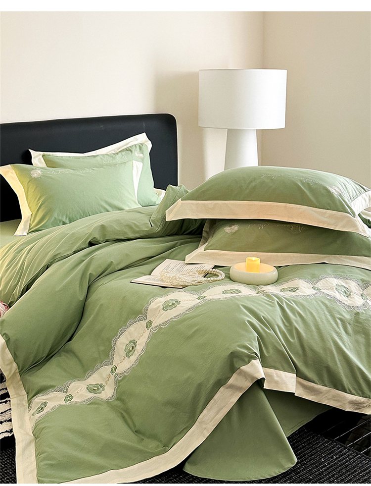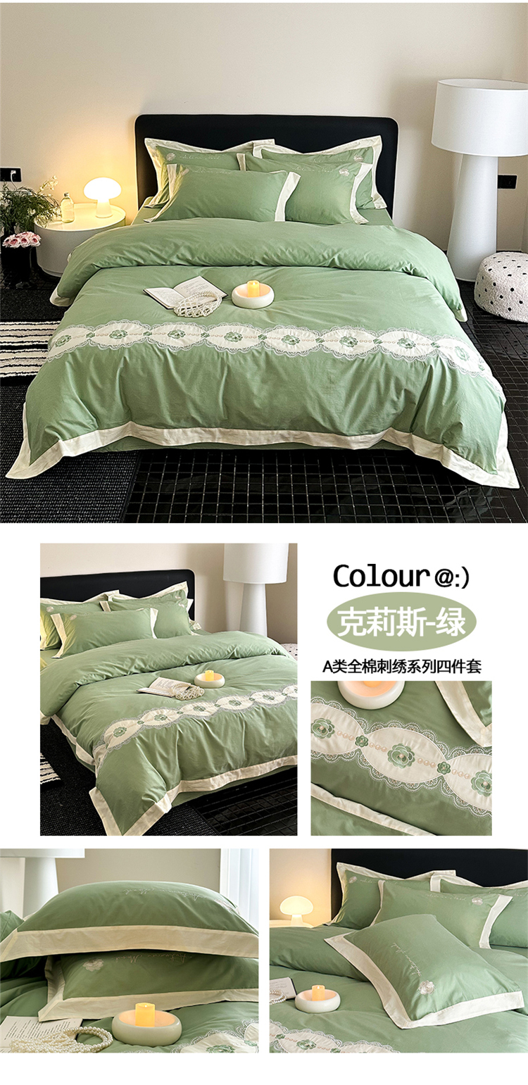 懒猫家纺 2025新款【克莉斯】全棉刺绣四件套 克莉斯-绿