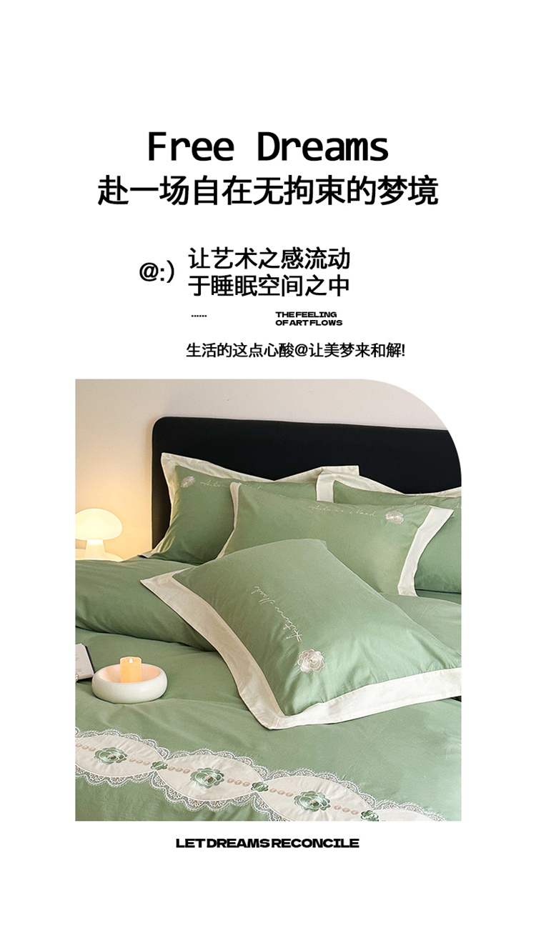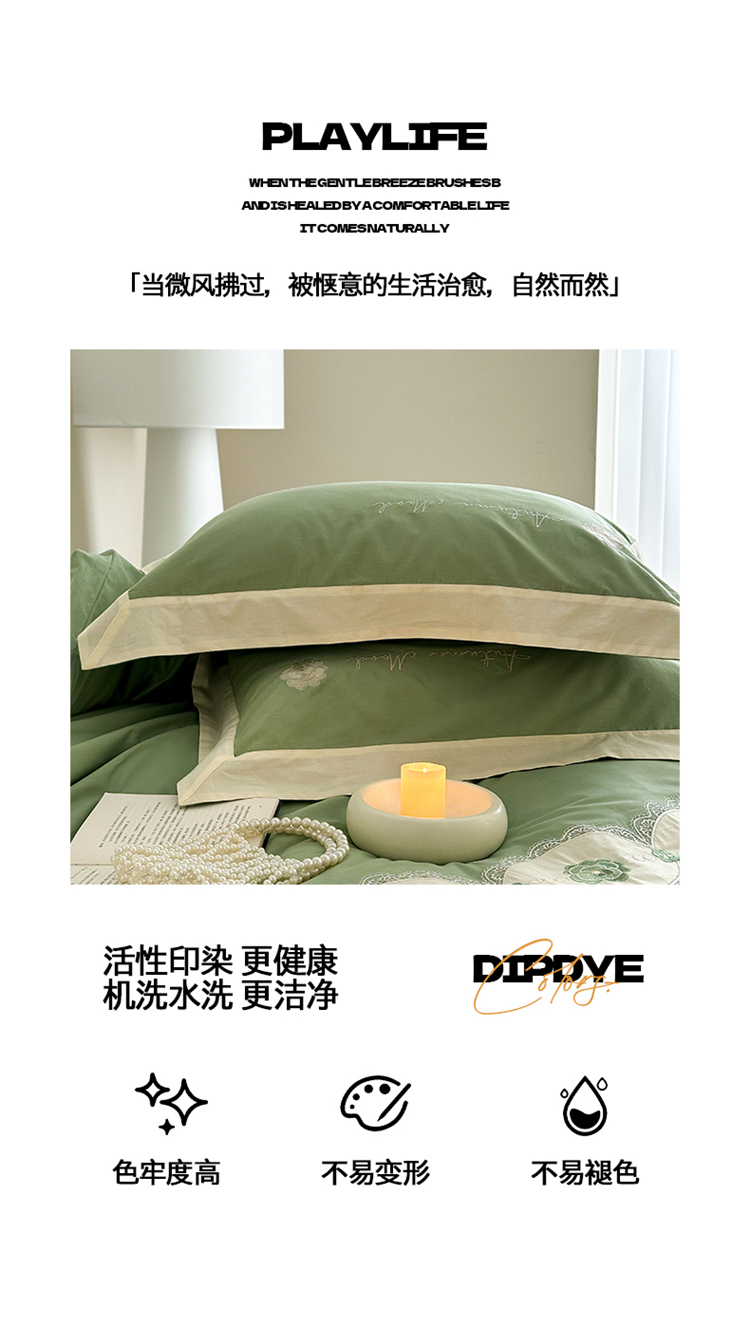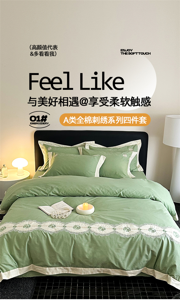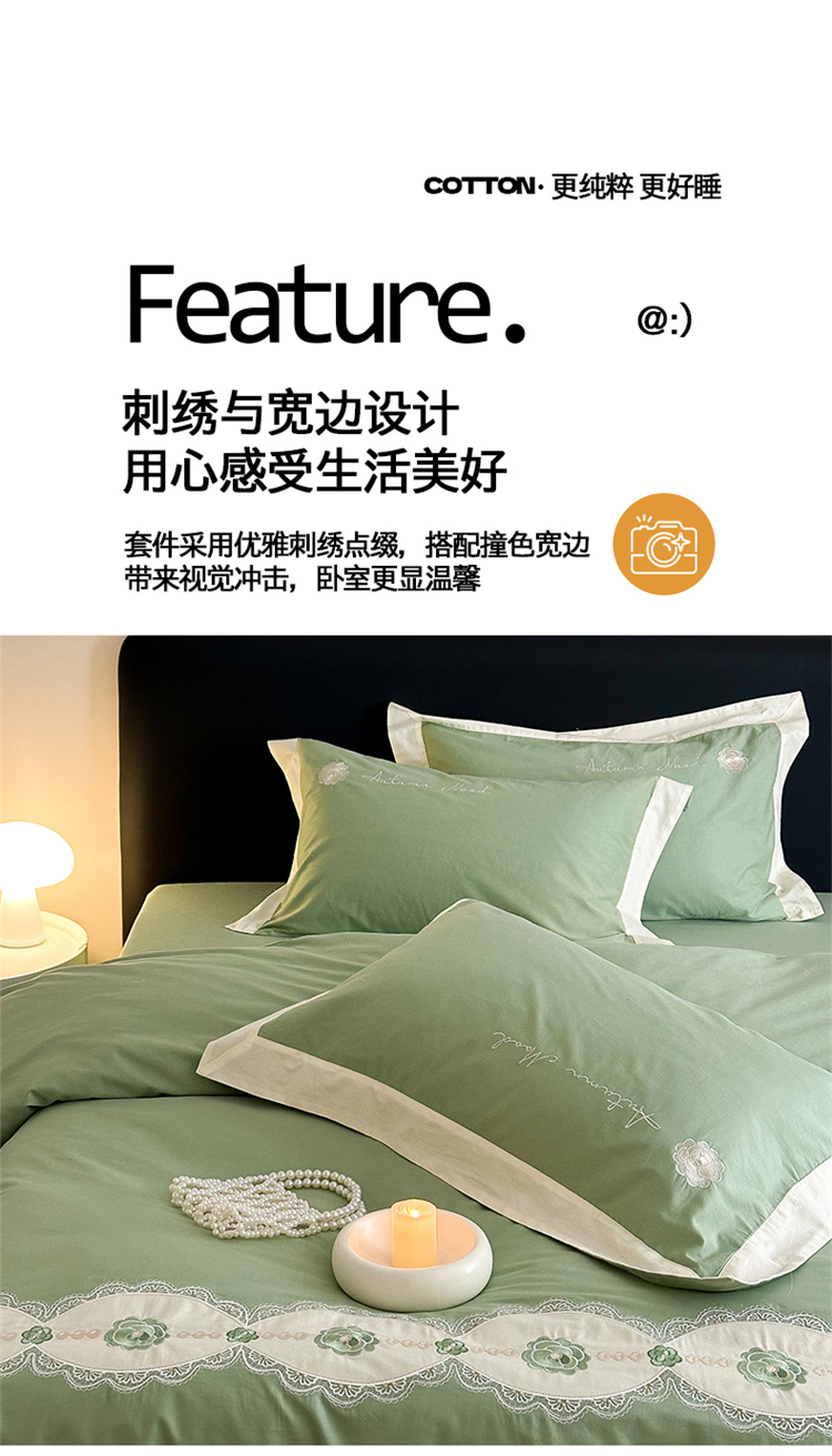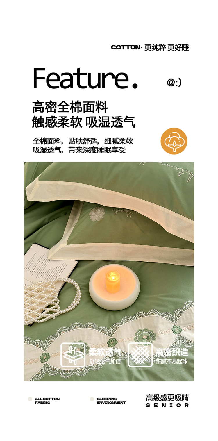 懒猫家纺 2025新款【克莉斯】全棉刺绣四件套 克莉斯-绿