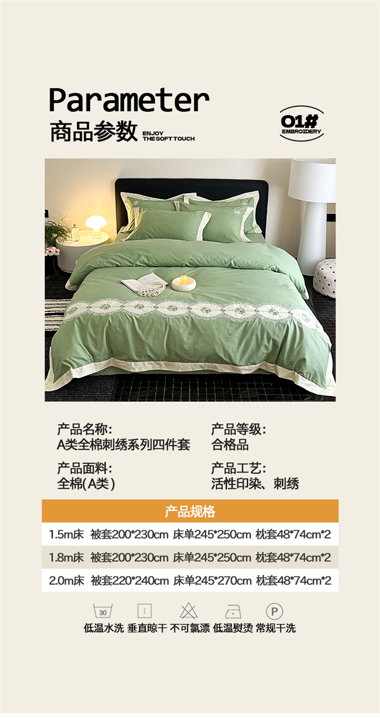 商品名称:懒猫家纺 2025新款【克莉斯】全棉刺绣四件套 克莉斯-绿