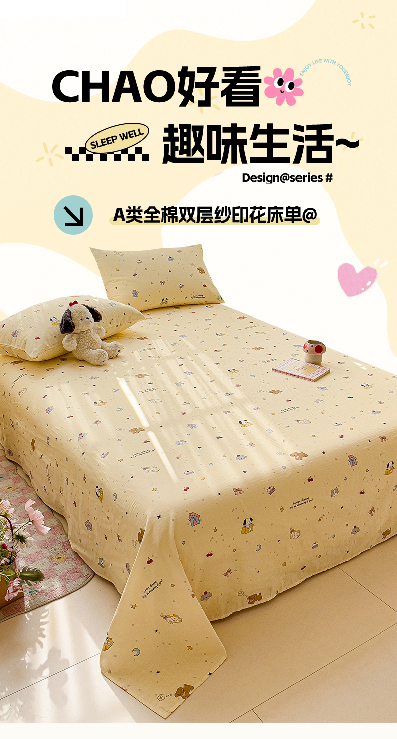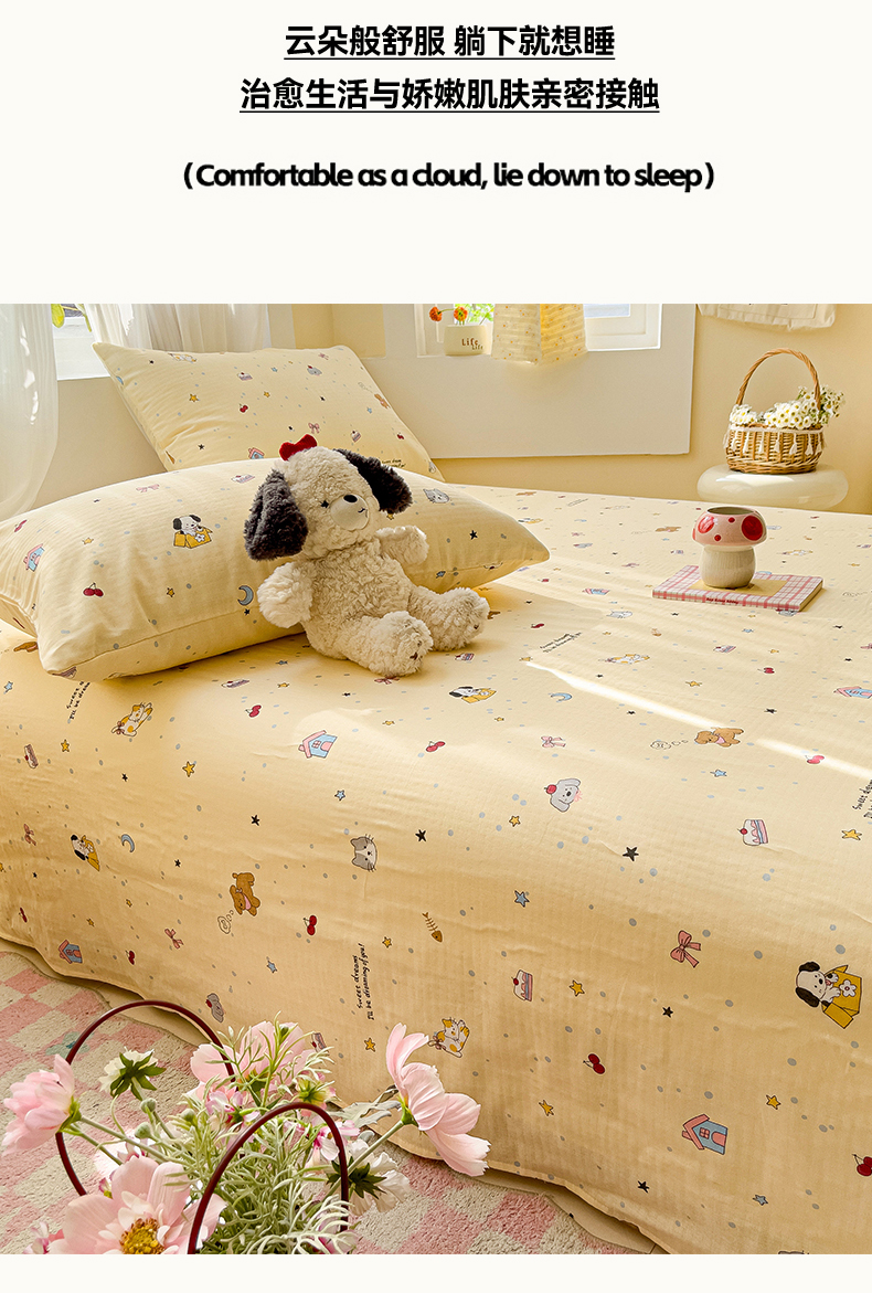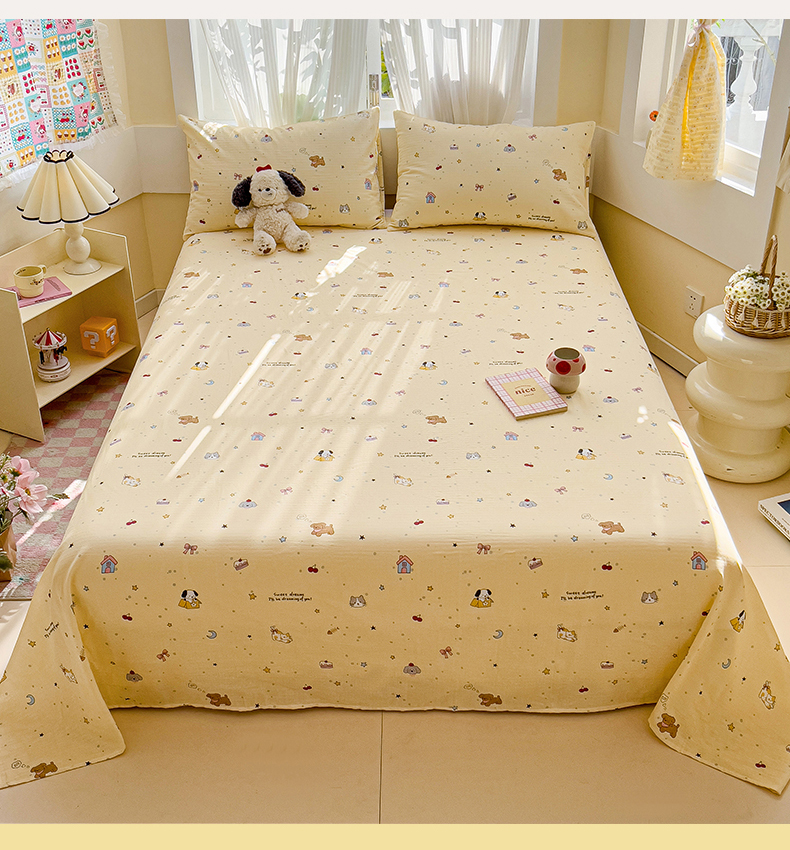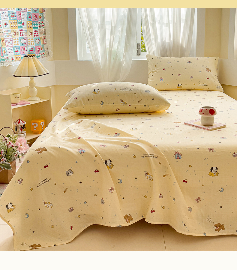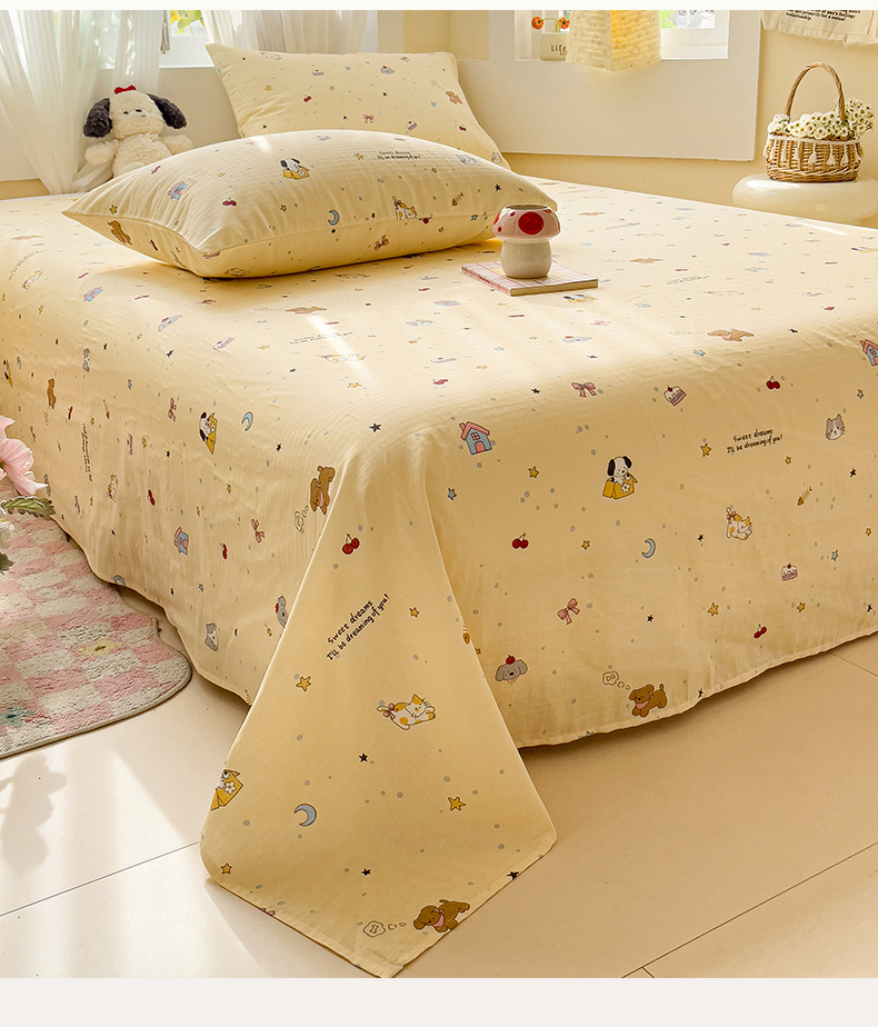 名兮-2025新款全棉双层纱床单 双层纱-狗狗幻想