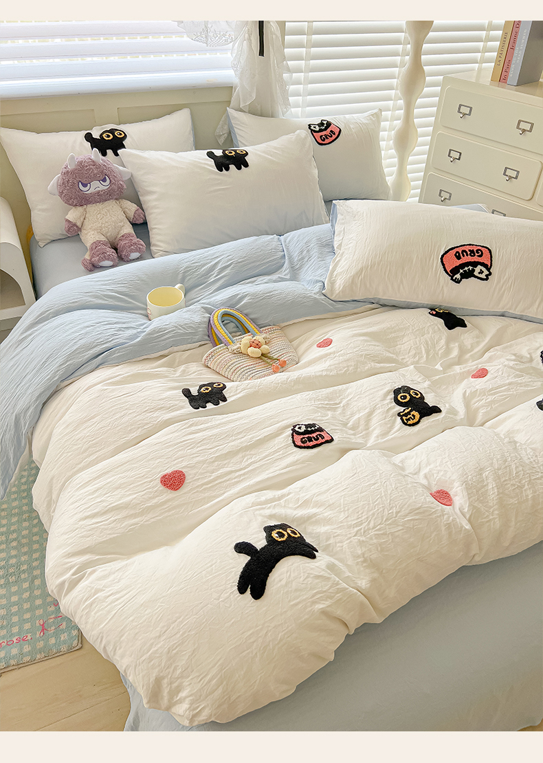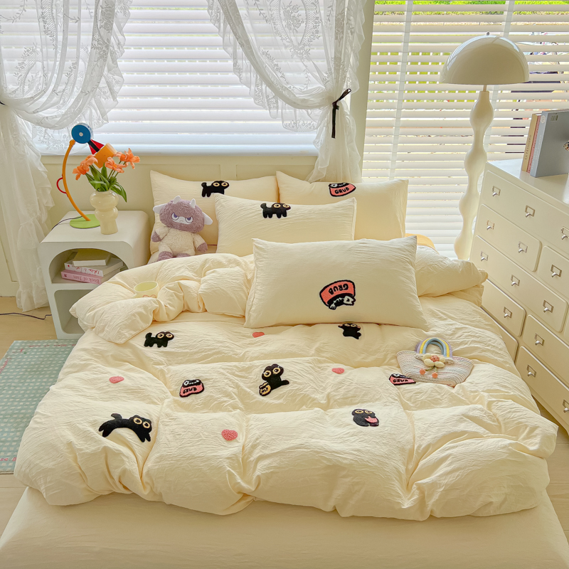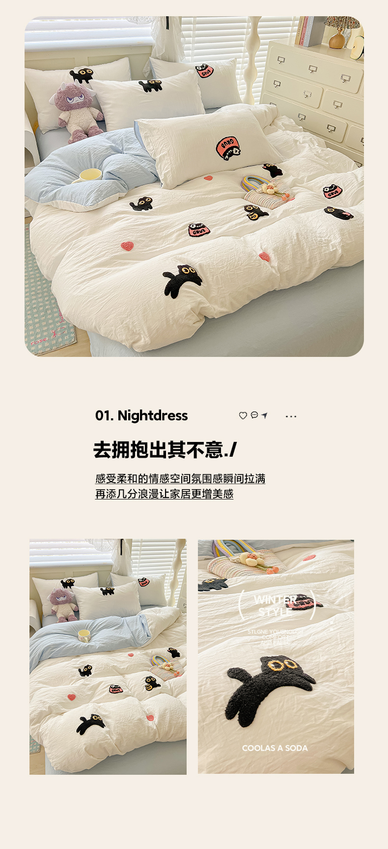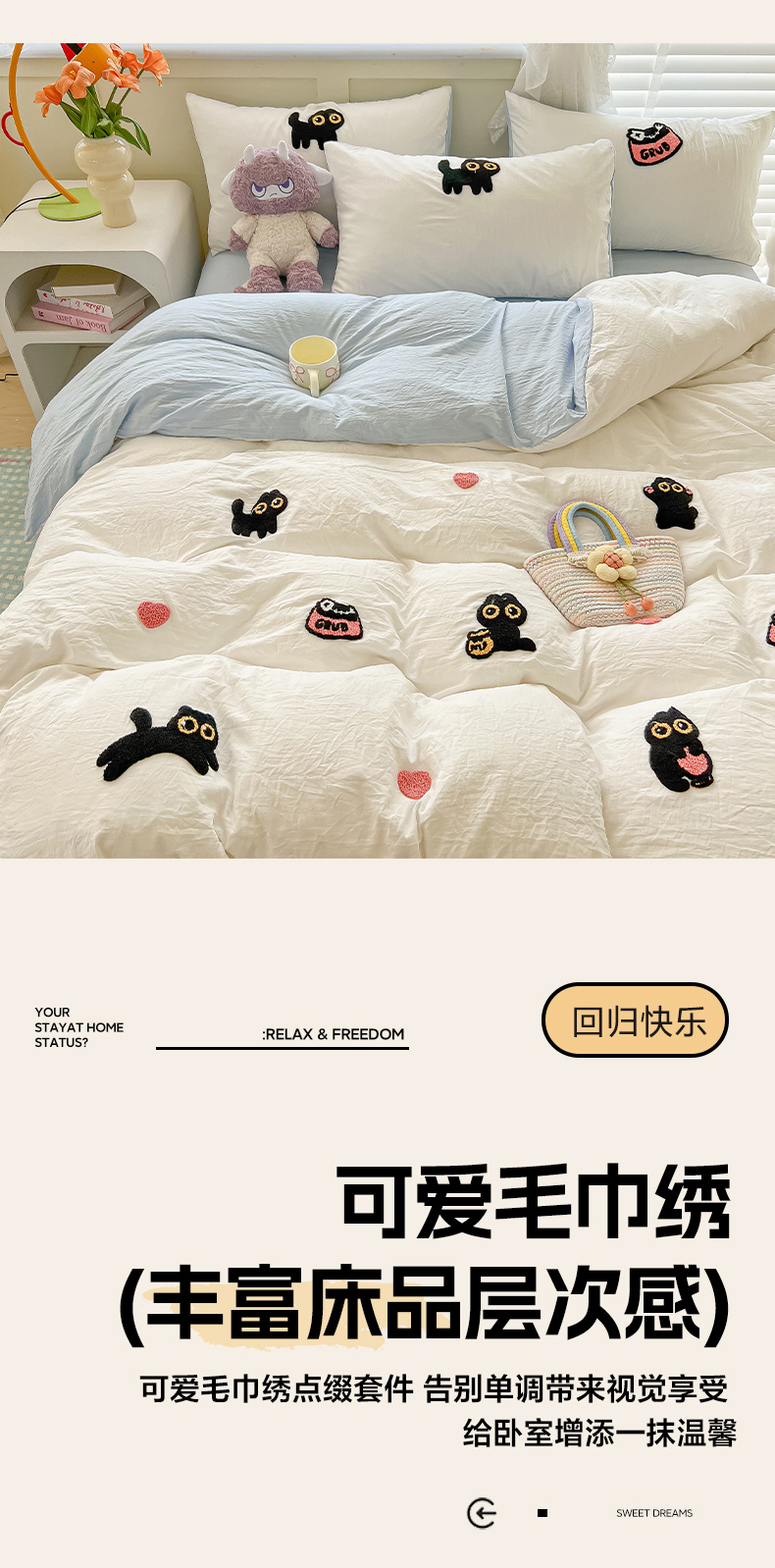 (总)韩巢家纺 2025款四季通用超柔水洗棉毛巾绣四件套-幸运猫系列