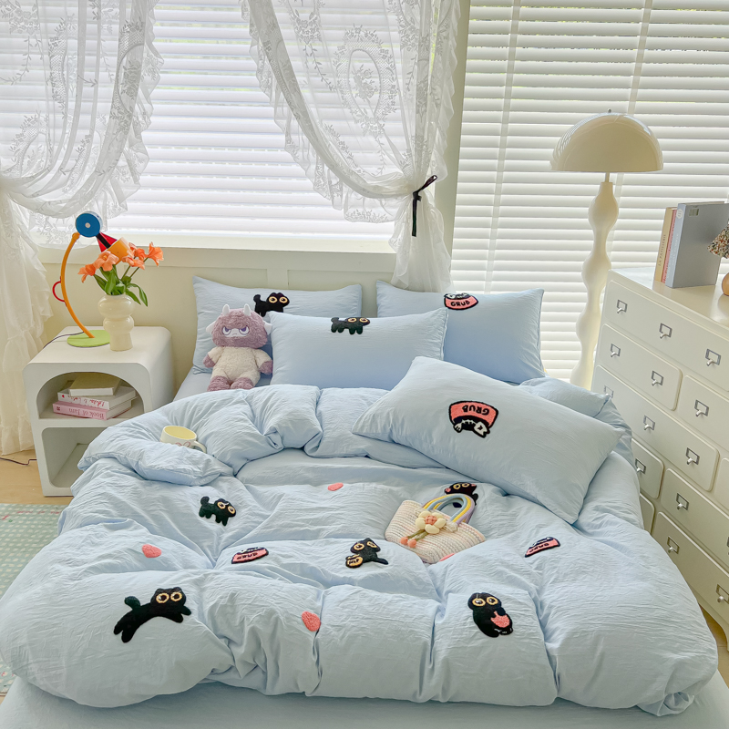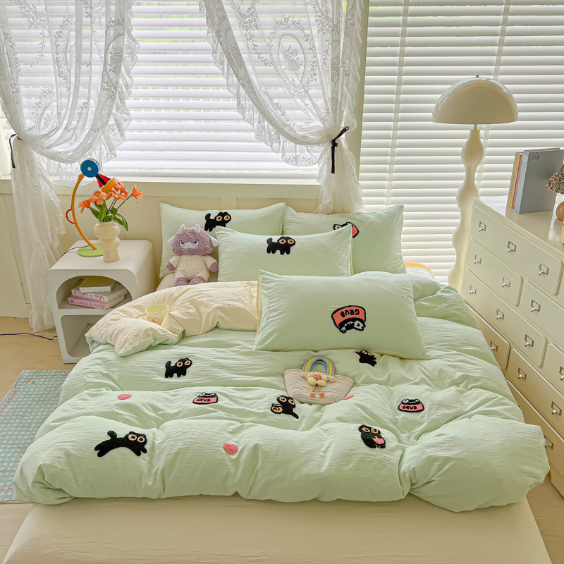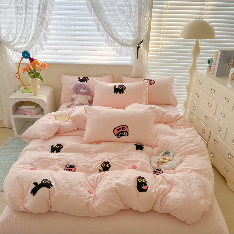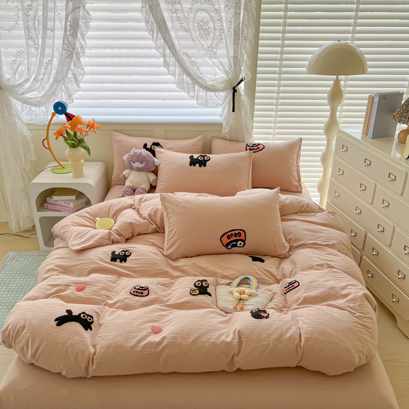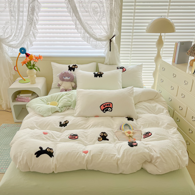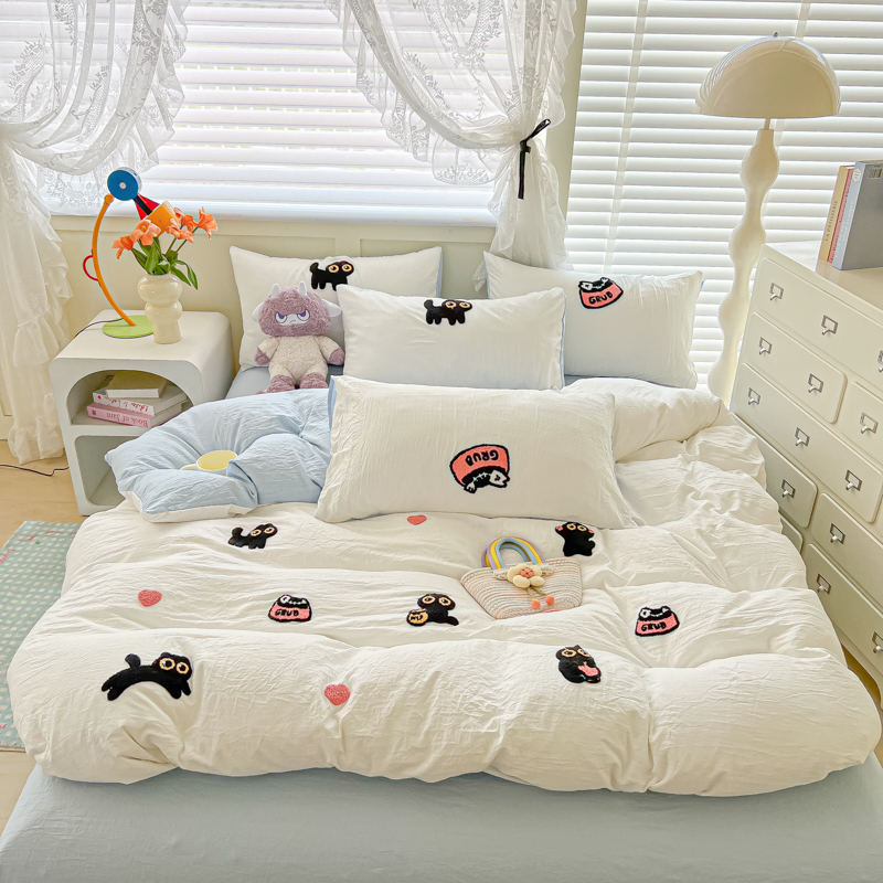 (总)韩巢家纺 2025款四季通用超柔水洗棉毛巾绣四件套-幸运猫系列