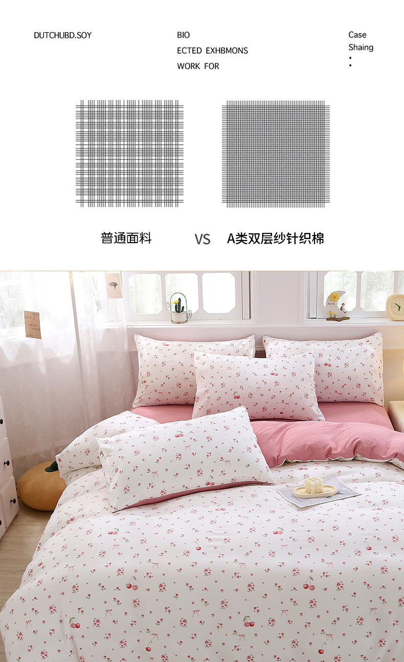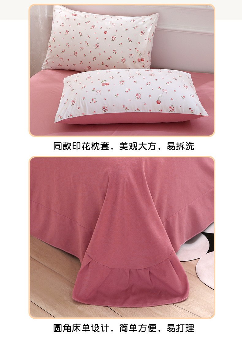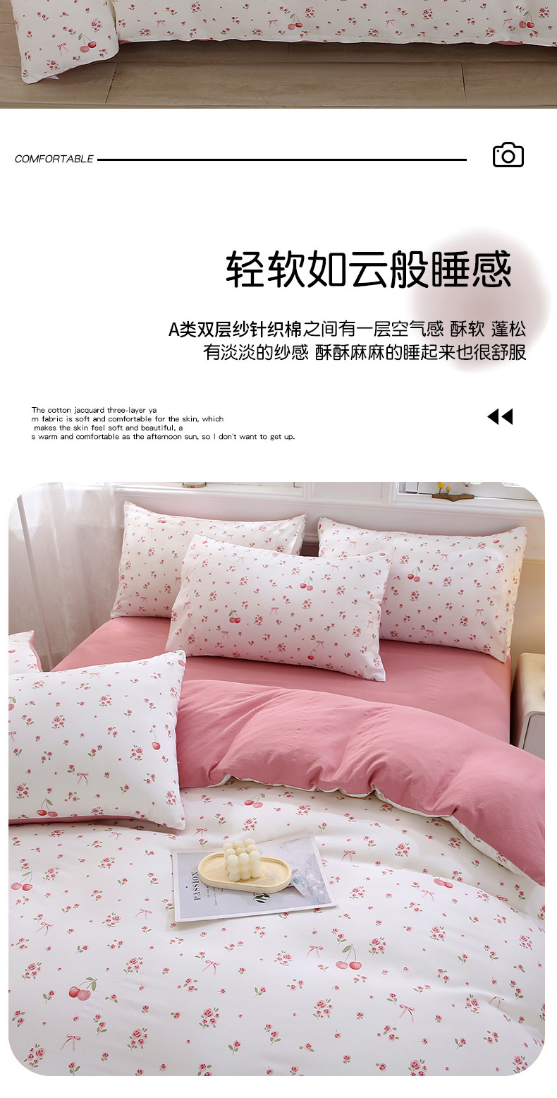 商品名称:织写 2025新款A类双层纱针织棉四件套床单四件套床单四件套小清新四件套 红色樱桃