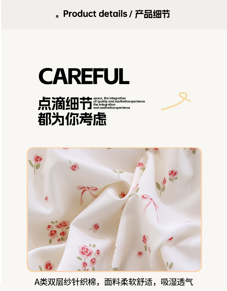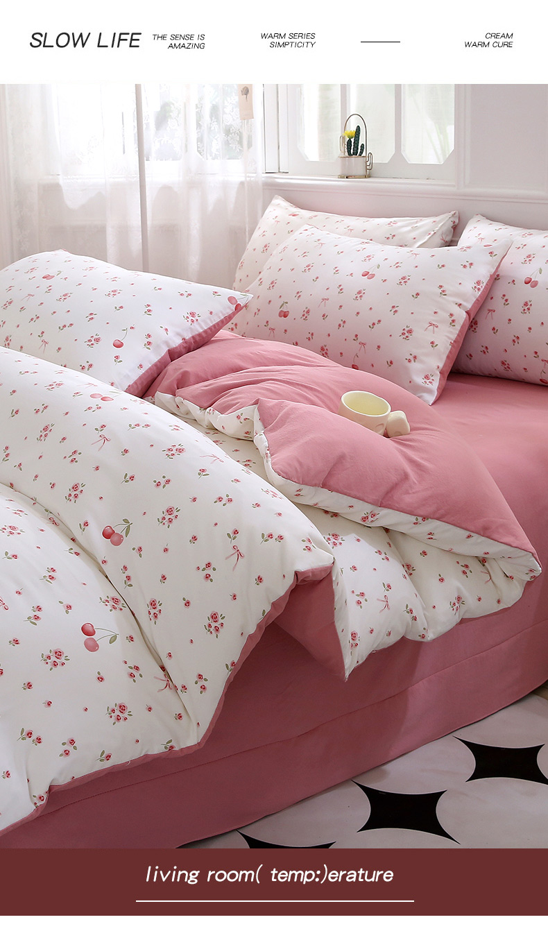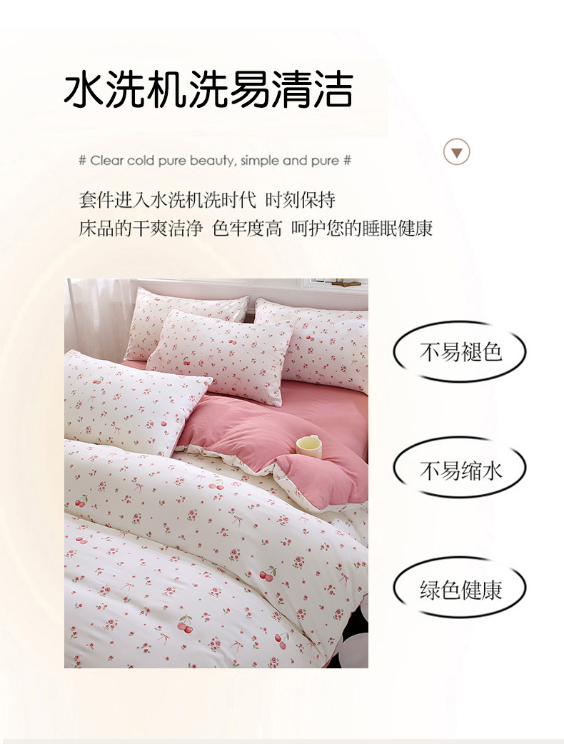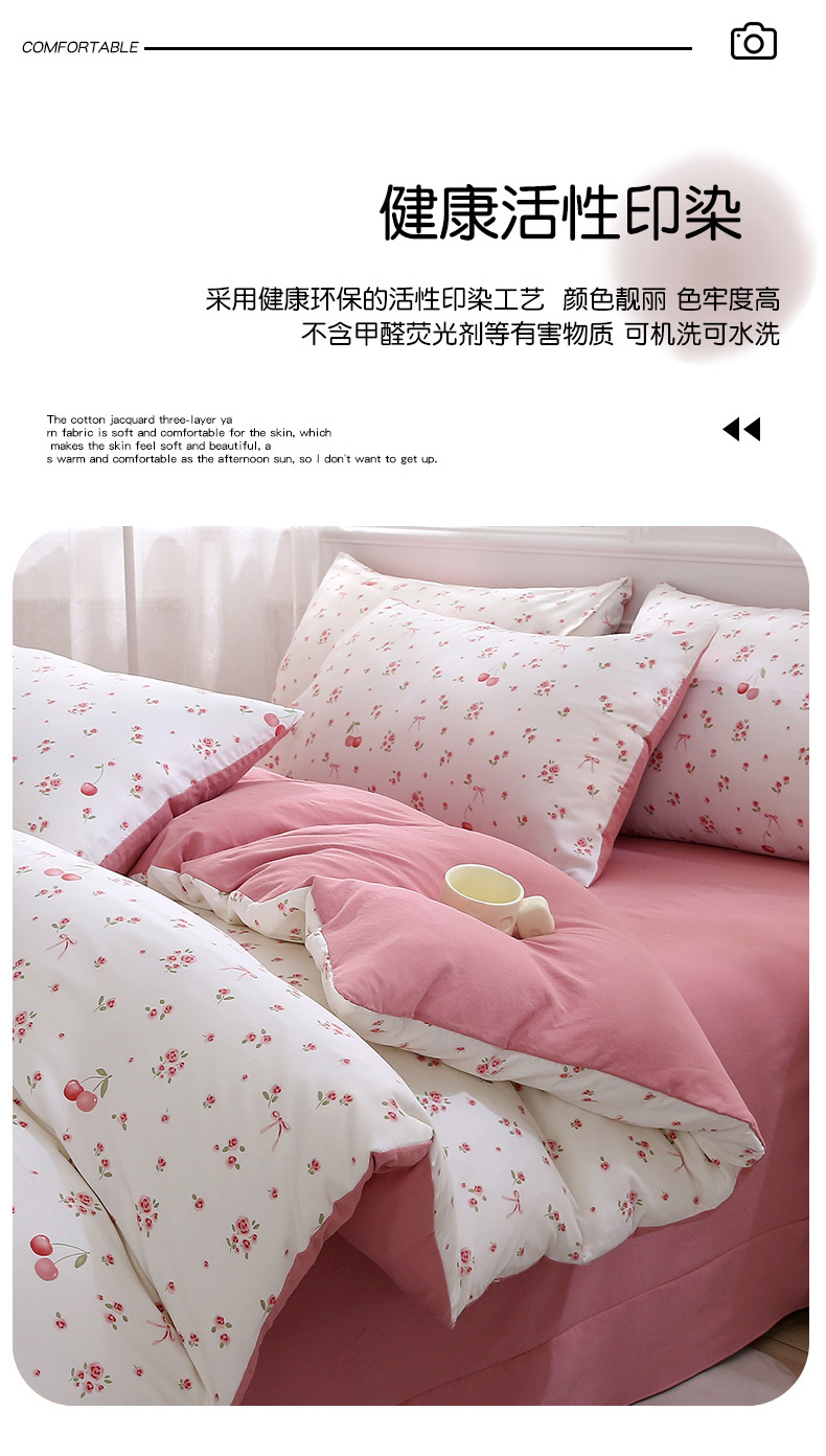 商品名称:织写 2025新款A类双层纱针织棉四件套床单四件套床单四件套小清新四件套 红色樱桃