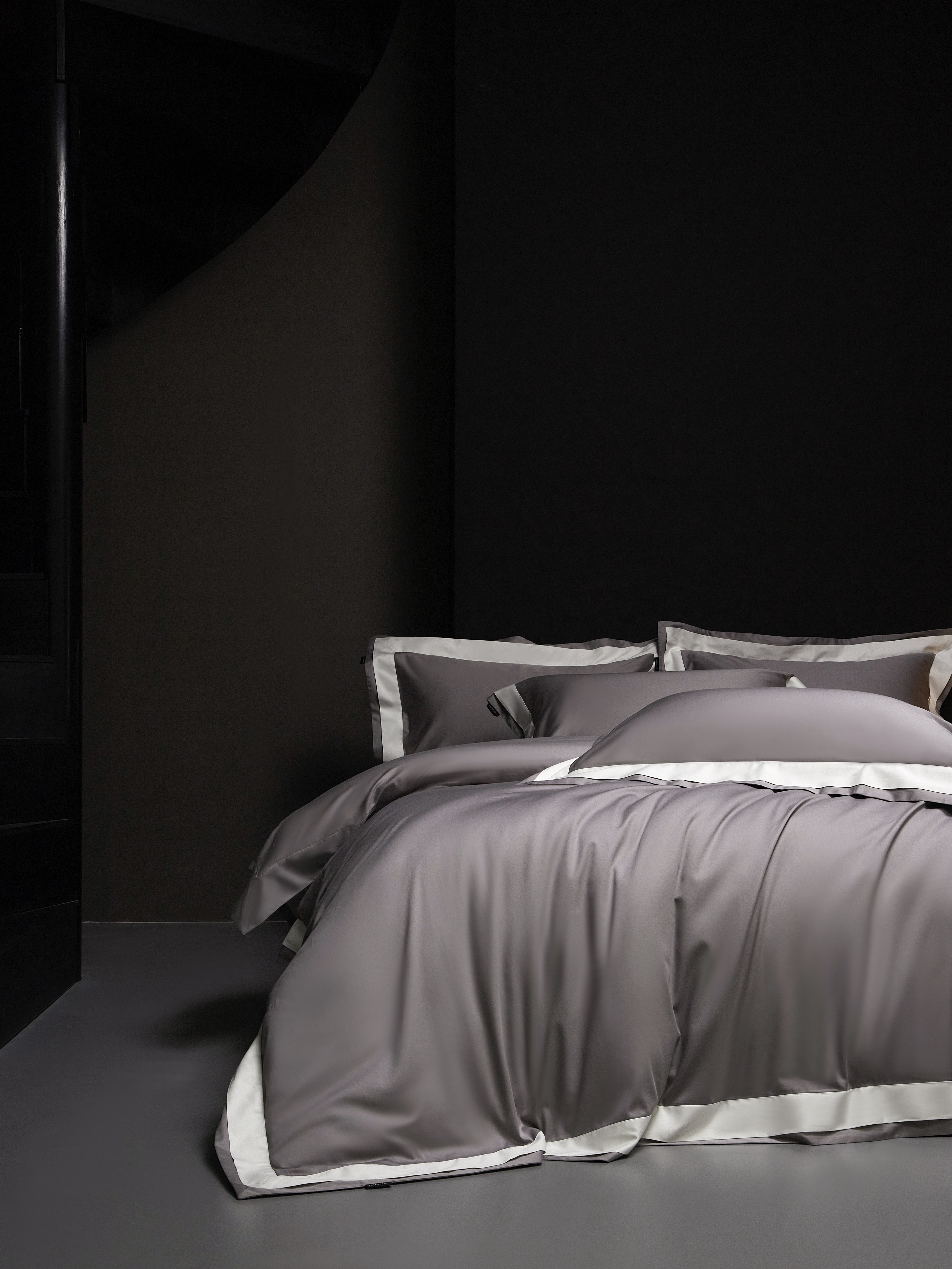 商品名称:时亿2025新款100支长绒棉四件套-休斯顿系列 休斯顿 浅灰