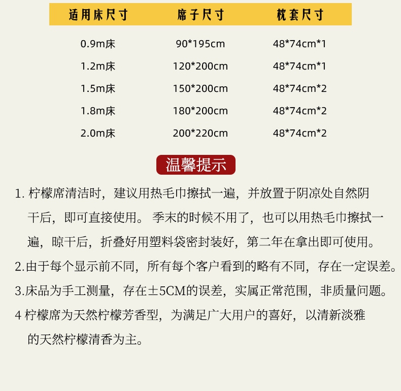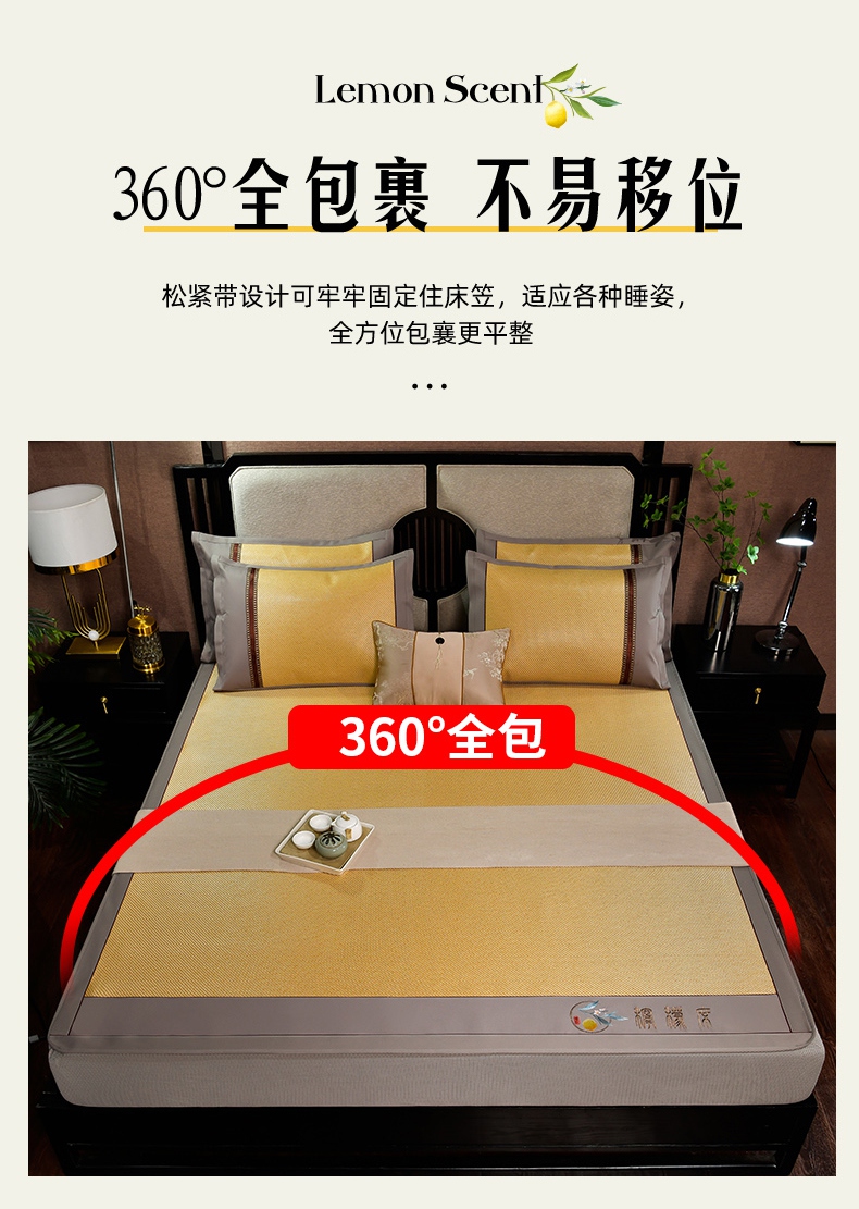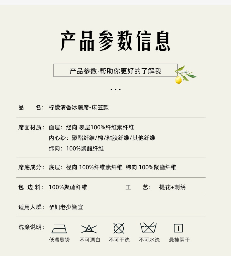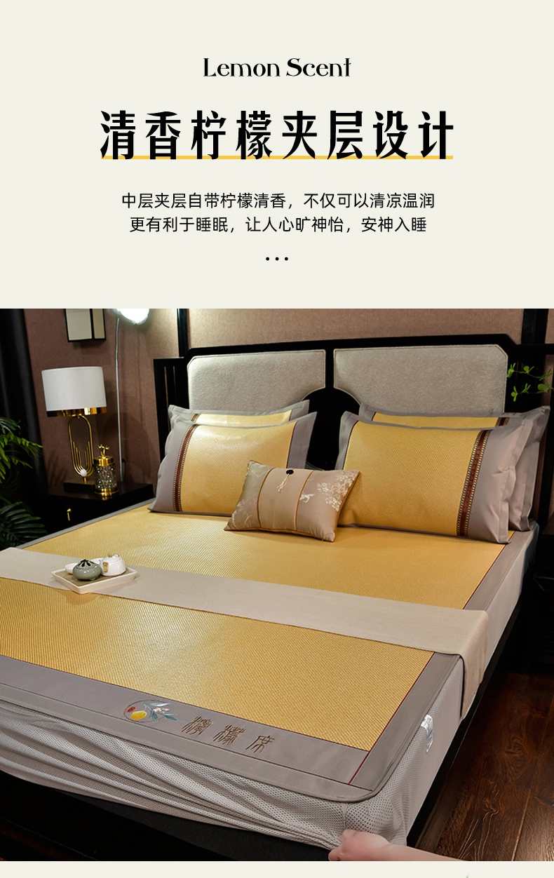 商品名称:(总)小牛席业 2025新款柠檬清香冰藤席(床笠款))凉席藤席冰藤席竹席空调席草席冰丝席豆豆席乳胶席三件套