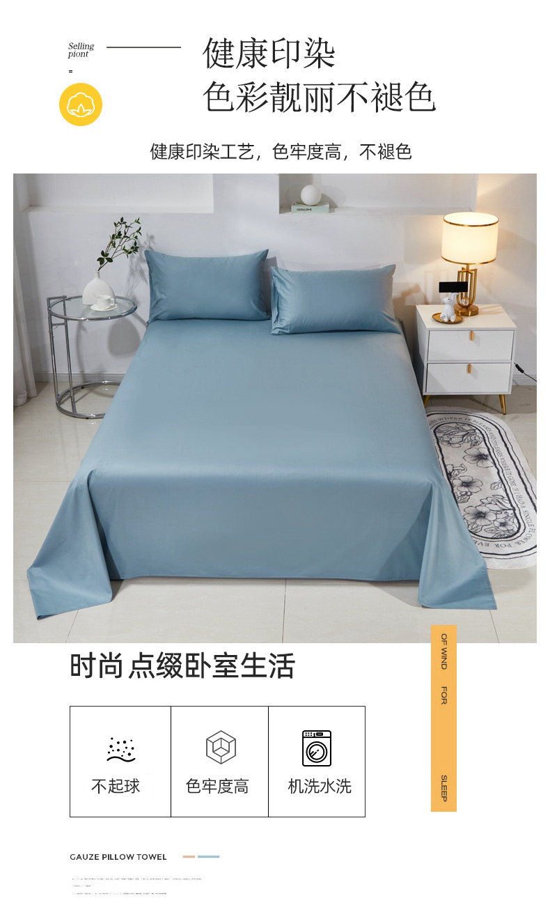 • 91家纺网 家纺一手货源 找家纺 晶缦家纺 2025新款喷气全棉13376纯棉斜纹纯色床单-沐兰 沐兰-雾霾蓝
