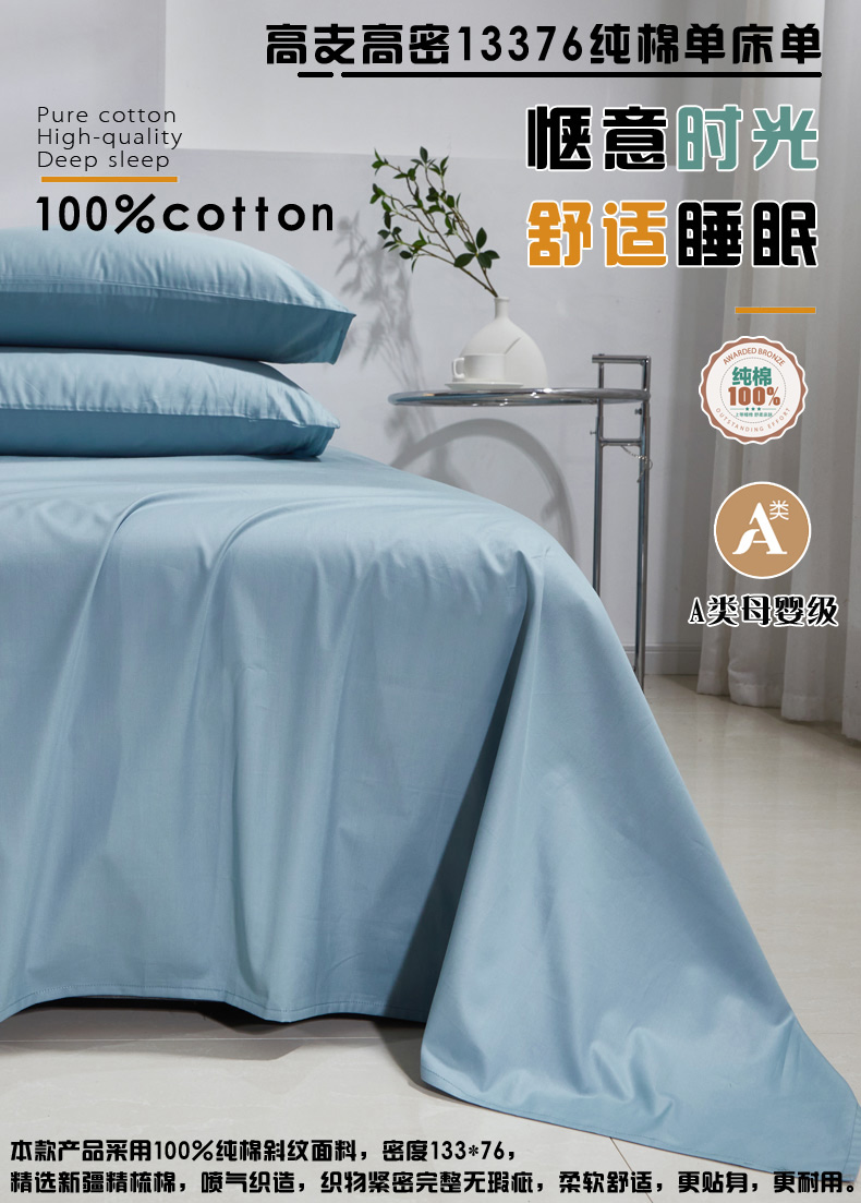 晶缦家纺 2025新款喷气全棉13376纯棉斜纹纯色床单-沐兰 沐兰-雾霾蓝