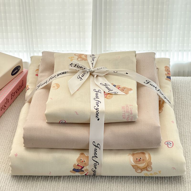 2025新款双层纱印花卡通四件套-叠拍 郁金香小兔