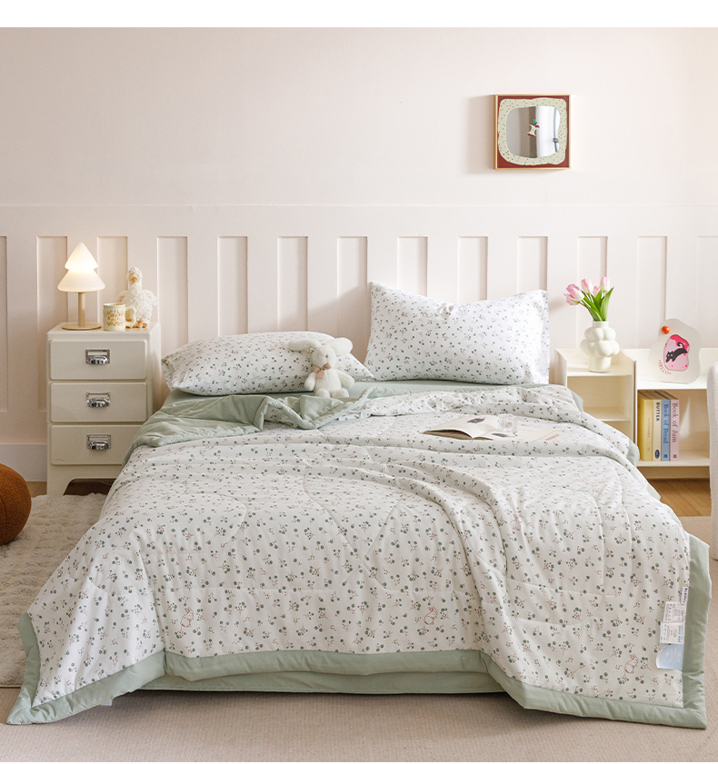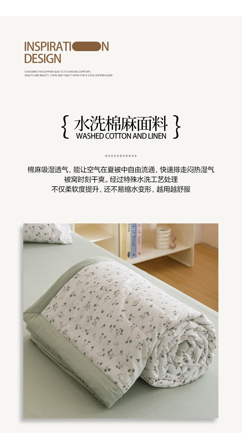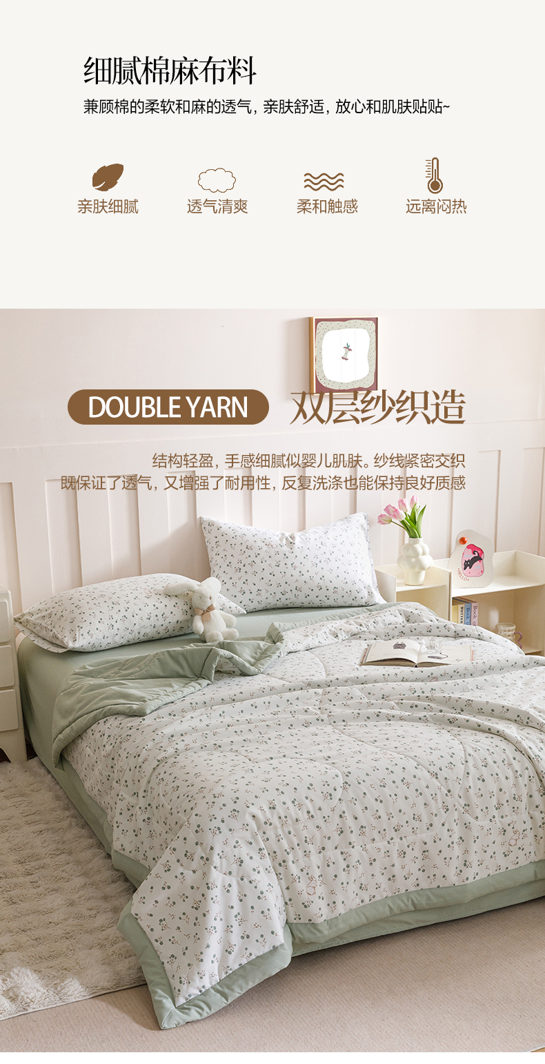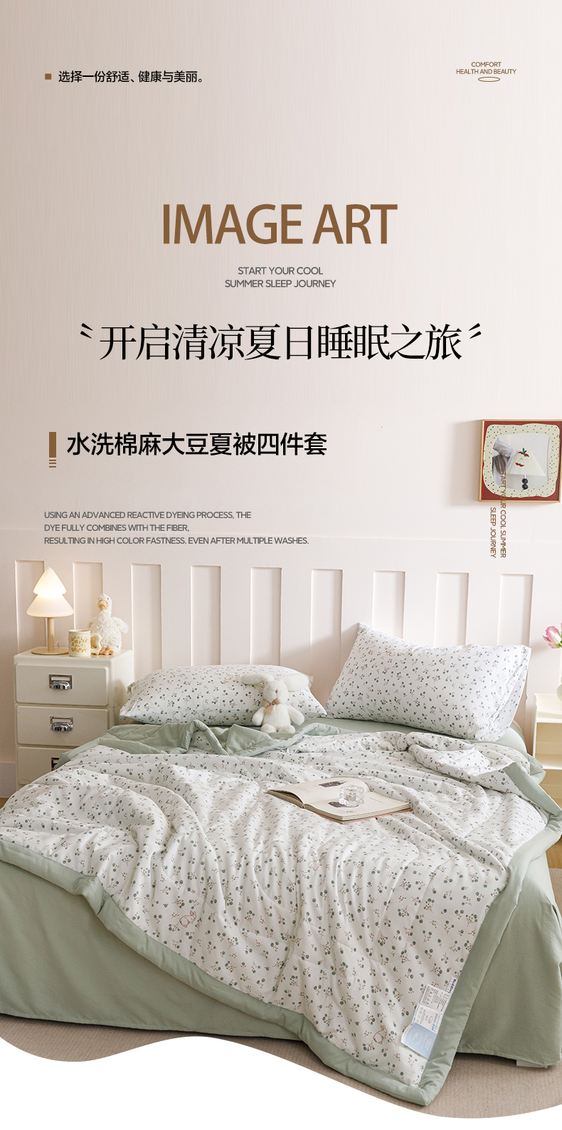 当前位置: 91家纺网 > 商品网购 > 床品套件 > 四件套 > 夏被四件套 > 一加一2025新款水洗棉麻印花大豆夏被 四件套 绿色心情
