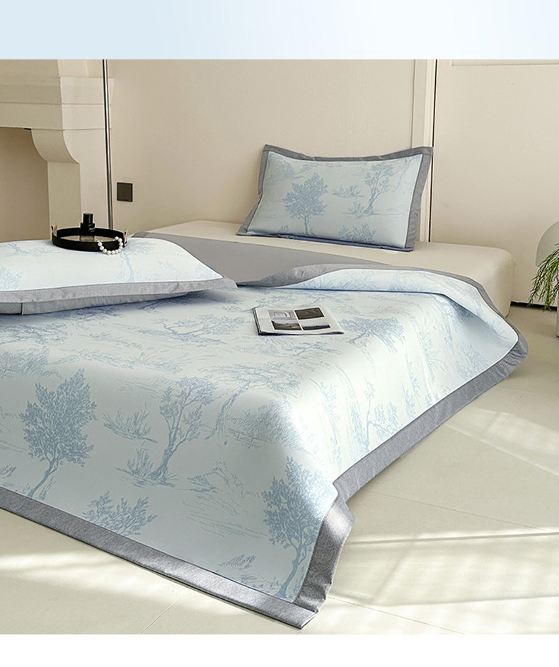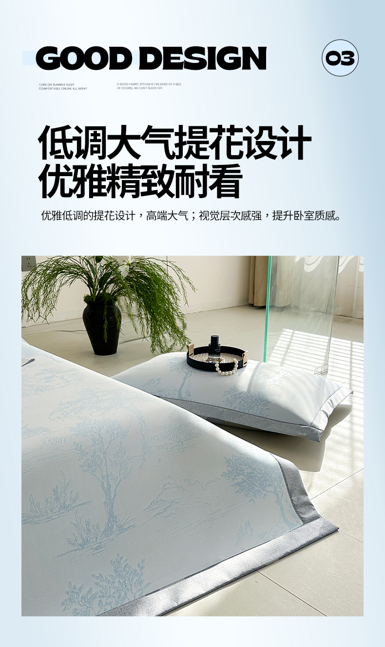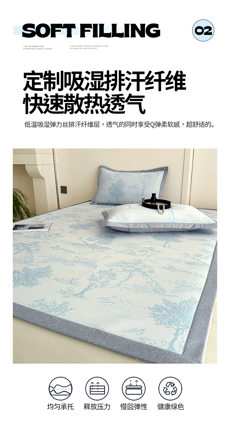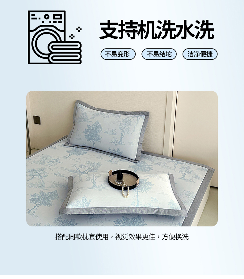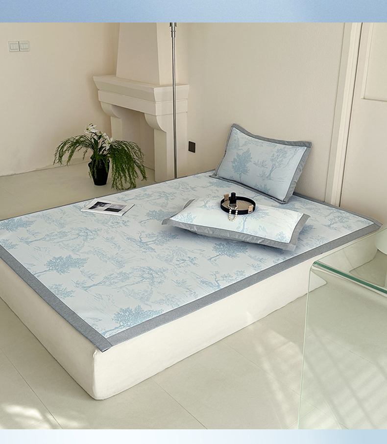 商品名称:网客家纺 2025新款高分子PE(聚乙烯)提花凉感软席 水墨江南-蓝