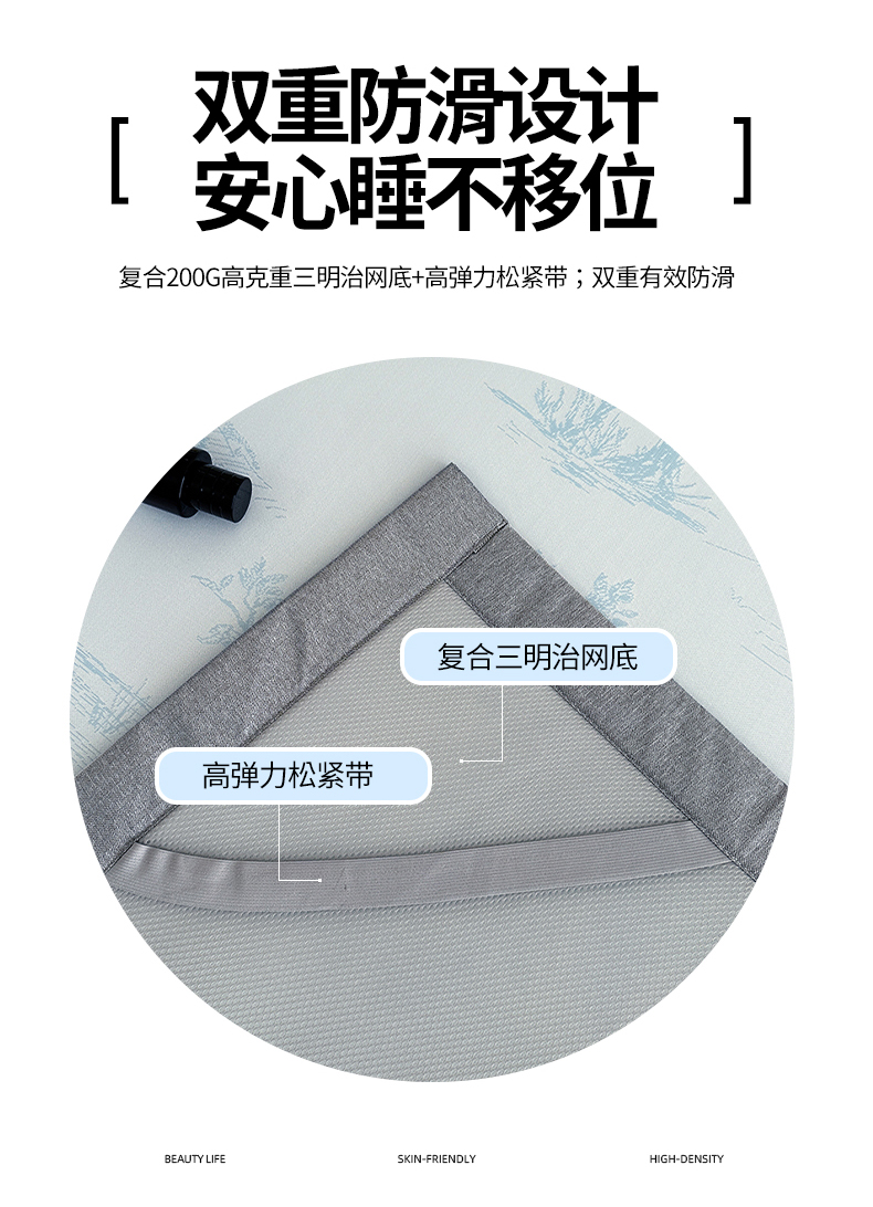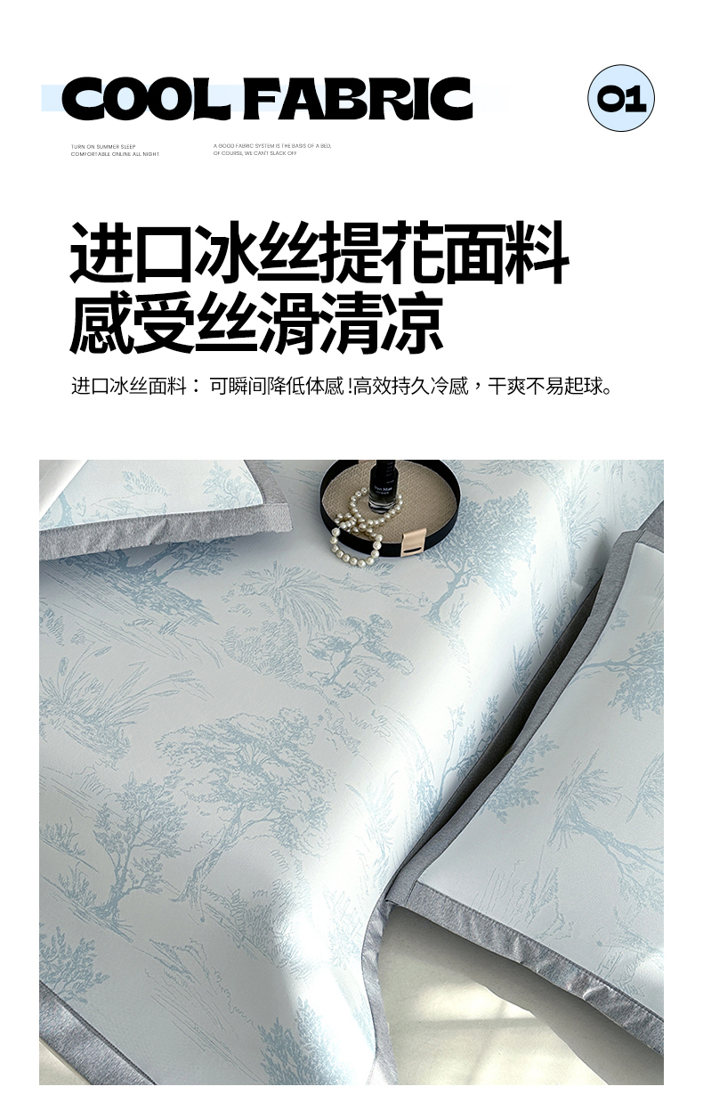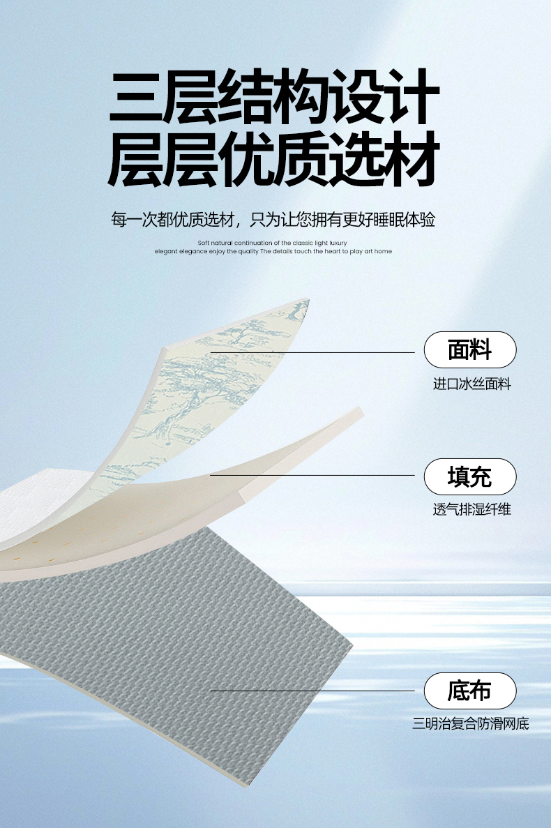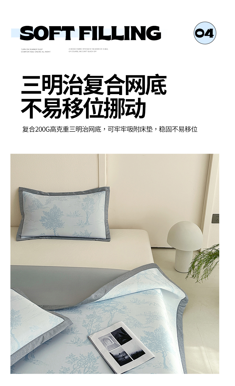 商品名称:网客家纺 2025新款高分子PE(聚乙烯)提花凉感软席 水墨江南-蓝