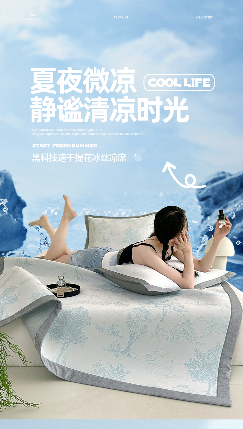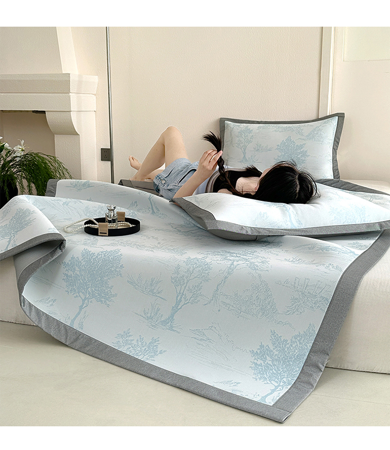 网客家纺 2025新款高分子PE(聚乙烯)提花凉感软席 水墨江南-蓝