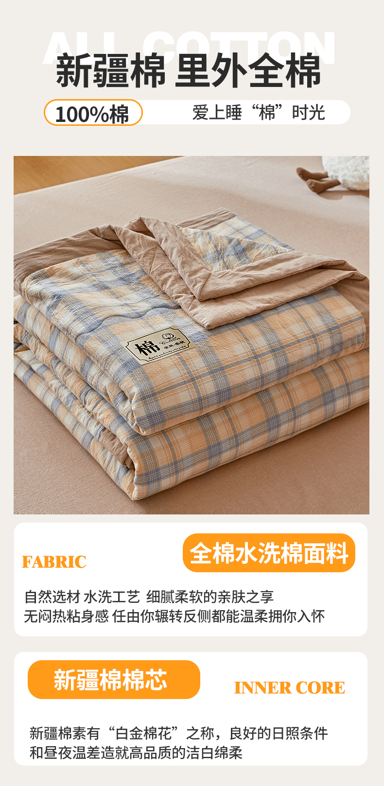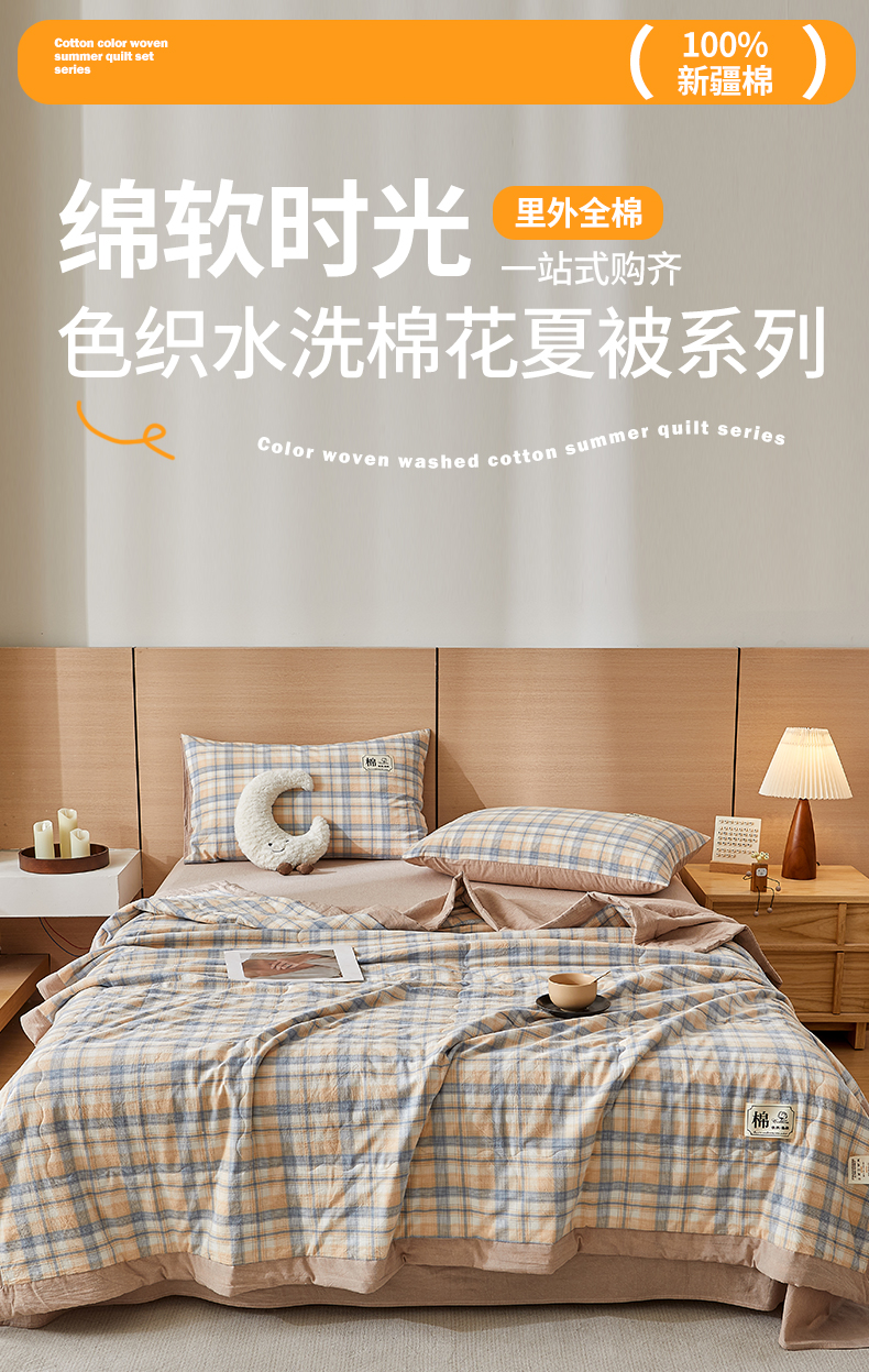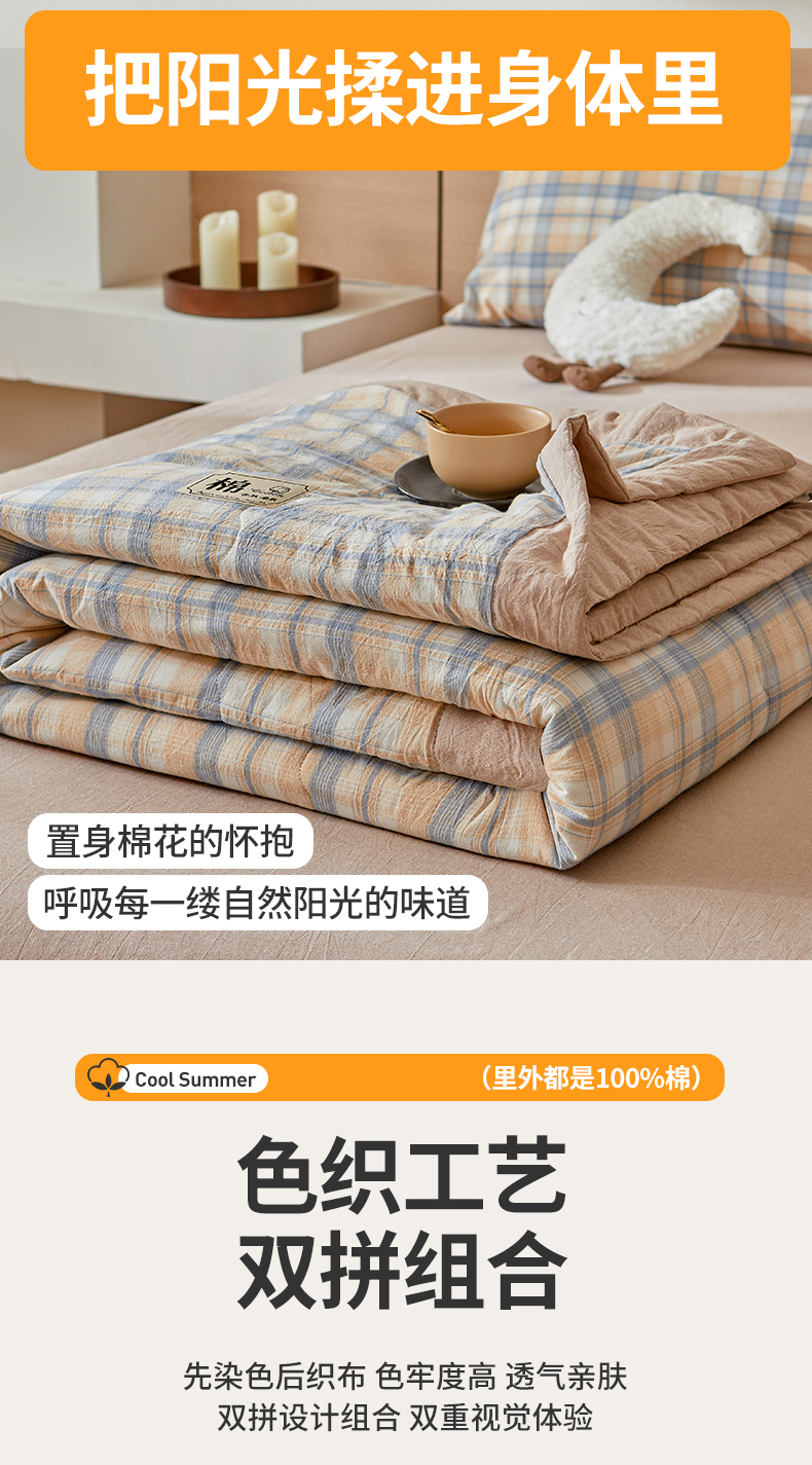 • 91家纺网 家纺一手货源 找家纺 招财星家纺 2025新款新疆棉花被夏被100%里外全棉棉花夏被无印风全棉色织水洗棉夏凉被空调被春秋被单人可机洗 初见