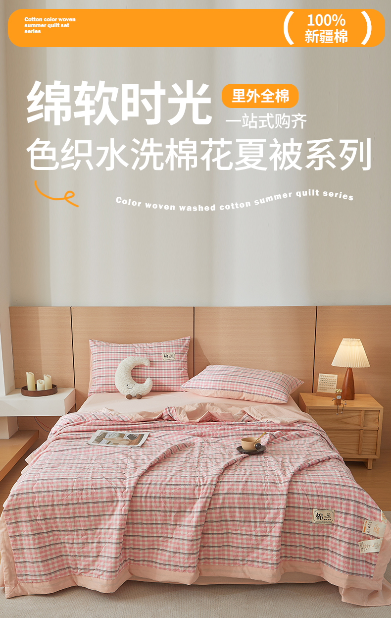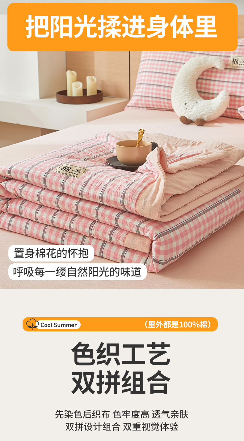 • 91家纺网 家纺一手货源 找家纺 招财星家纺 2025新款新疆棉花被夏被100%里外全棉棉花夏被无印风全棉色织水洗棉夏凉被空调被春秋被单人可机洗 若梦
