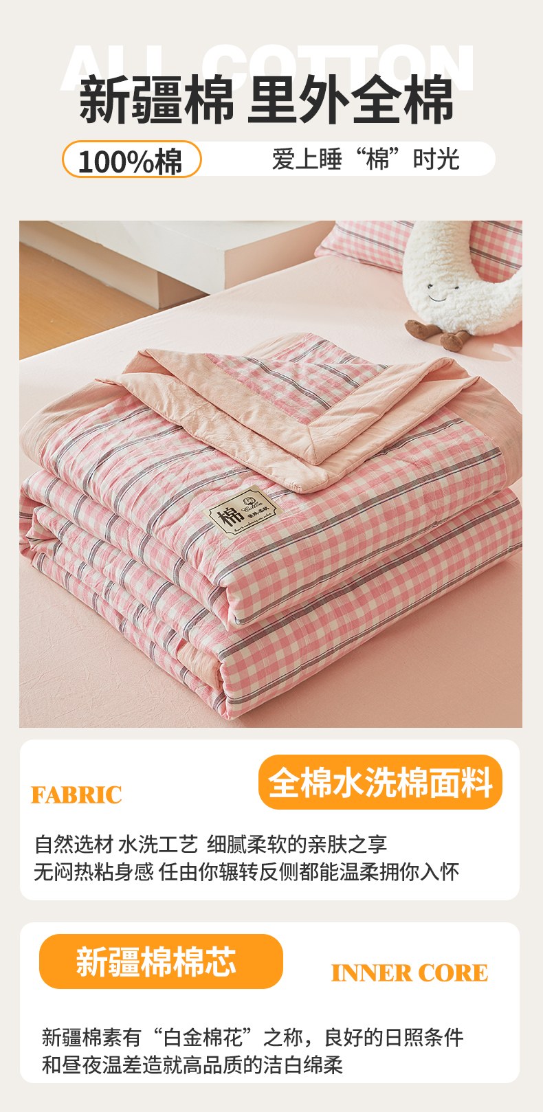 招财星家纺 2025新款新疆棉花被夏被100%里外全棉棉花夏被无印风全棉色织水洗棉夏凉被空调被春秋被单人可机洗 若梦