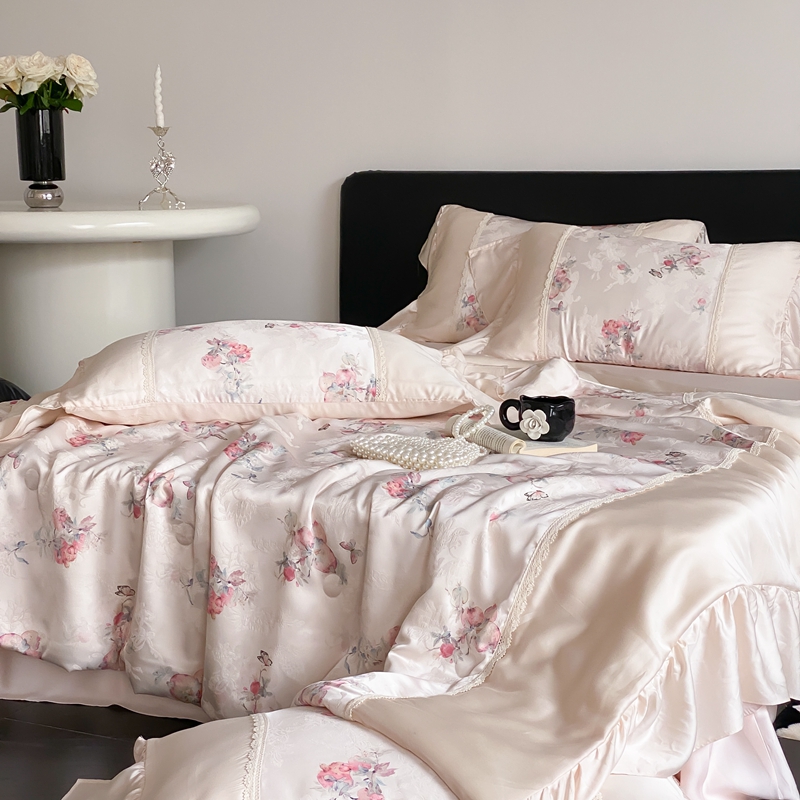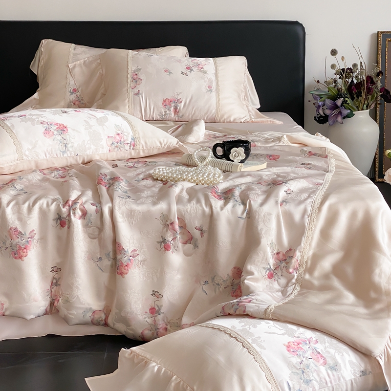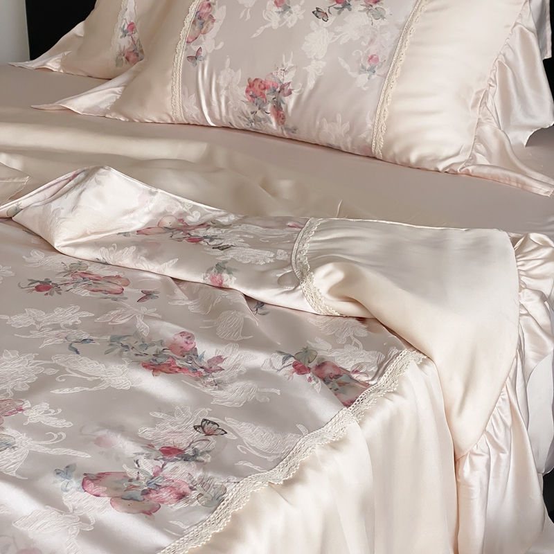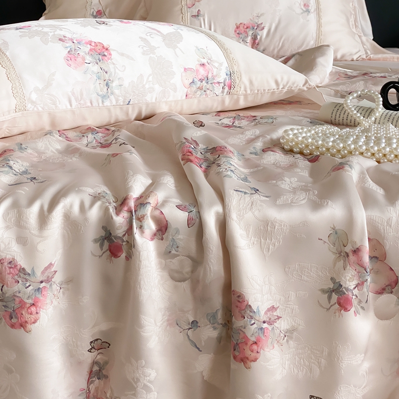 商品名称:(总)黛舒家居 2025新款兰精天丝刺绣提花夏被四件套-梦蝶