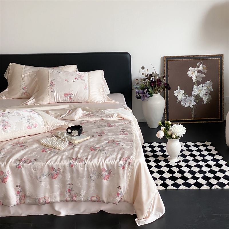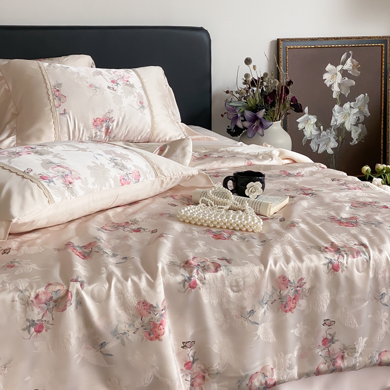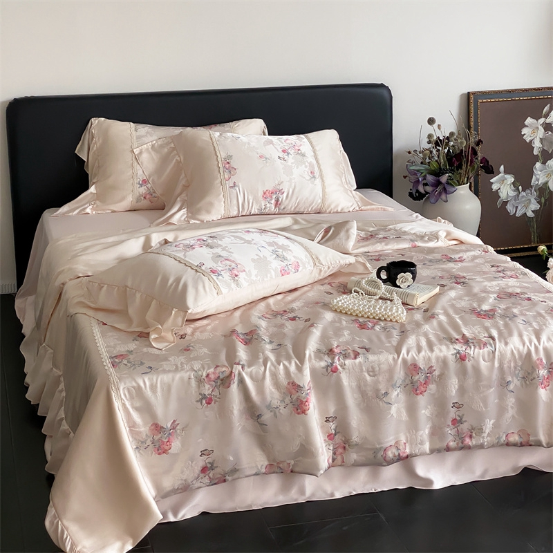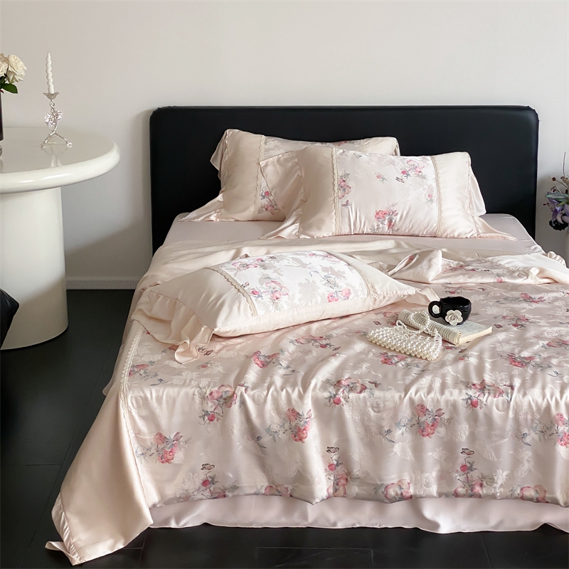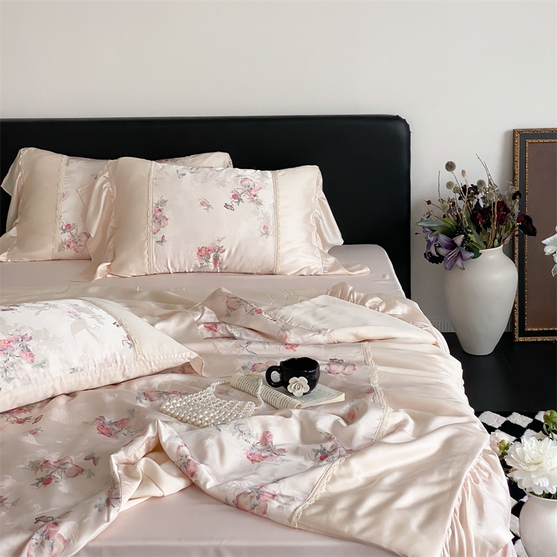 (总)黛舒家居 2025新款兰精天丝刺绣提花夏被四件套-梦蝶
