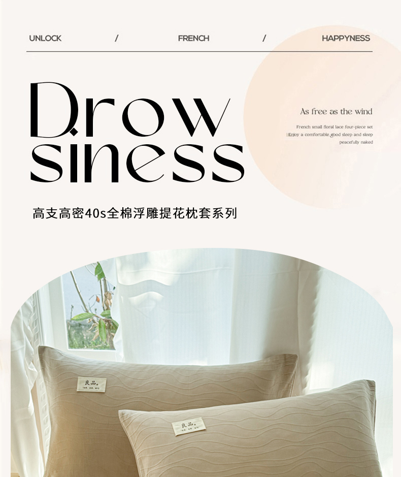 商品名称:眠博士 2025新款全棉美拉德轻奢简约浮雕提花系列-单枕套 单品追忆枕套-梧桐杏