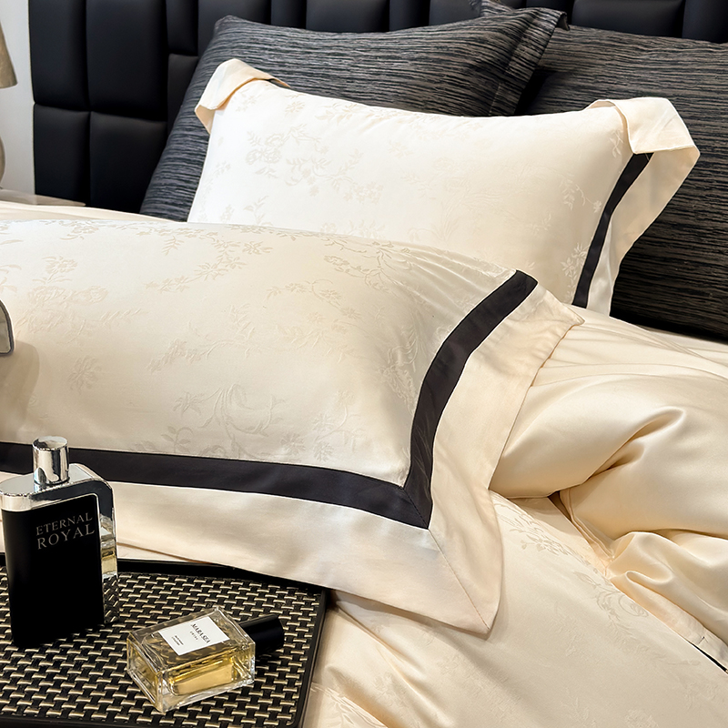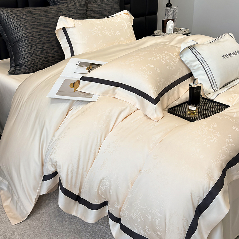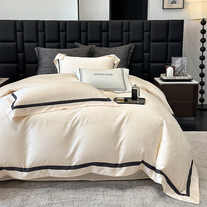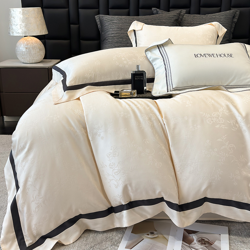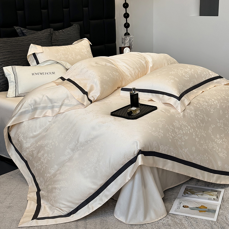 商品名称:若未家居 LOVEWE HOUSE 2025新款兰精天丝棉轻奢提花双拼撞色工艺套件四件套-春晓 春晓-奶油米