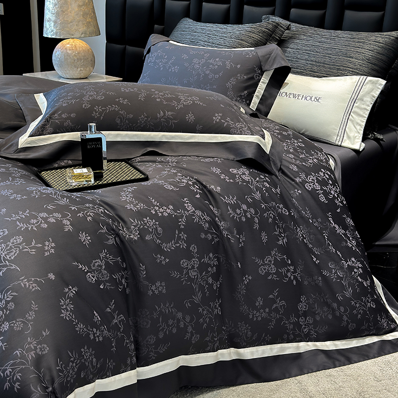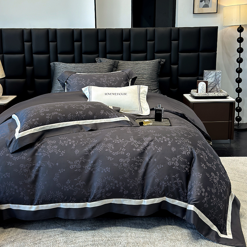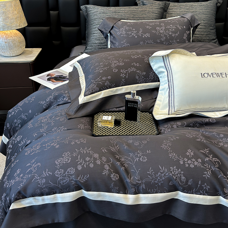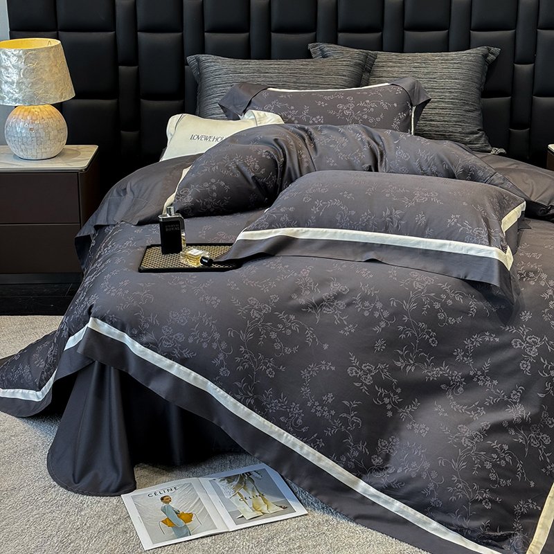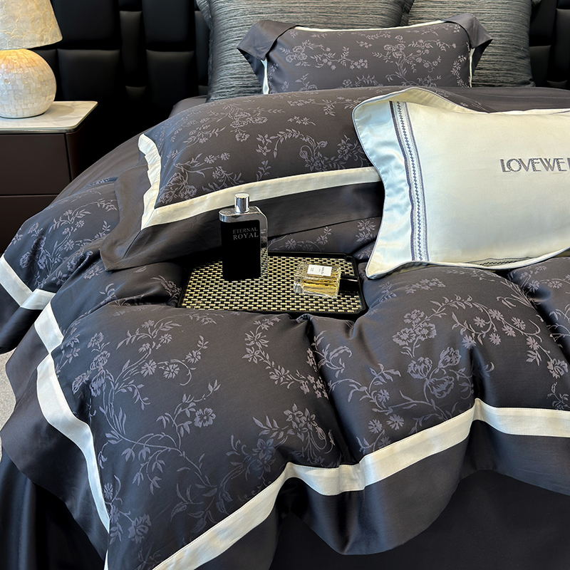 (总)若未家居2023新款轻奢意式50支全棉长绒棉四件套-水墨,贵族白,雾棕,烟蓝