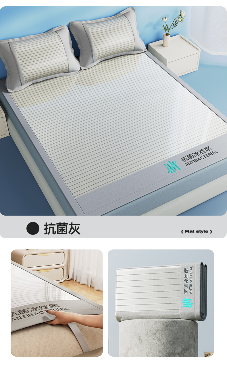 • 91家纺网 家纺一手货源 找家纺 卡初家居  2025新款A类抗菌冰丝席 席子凉席 抗菌灰