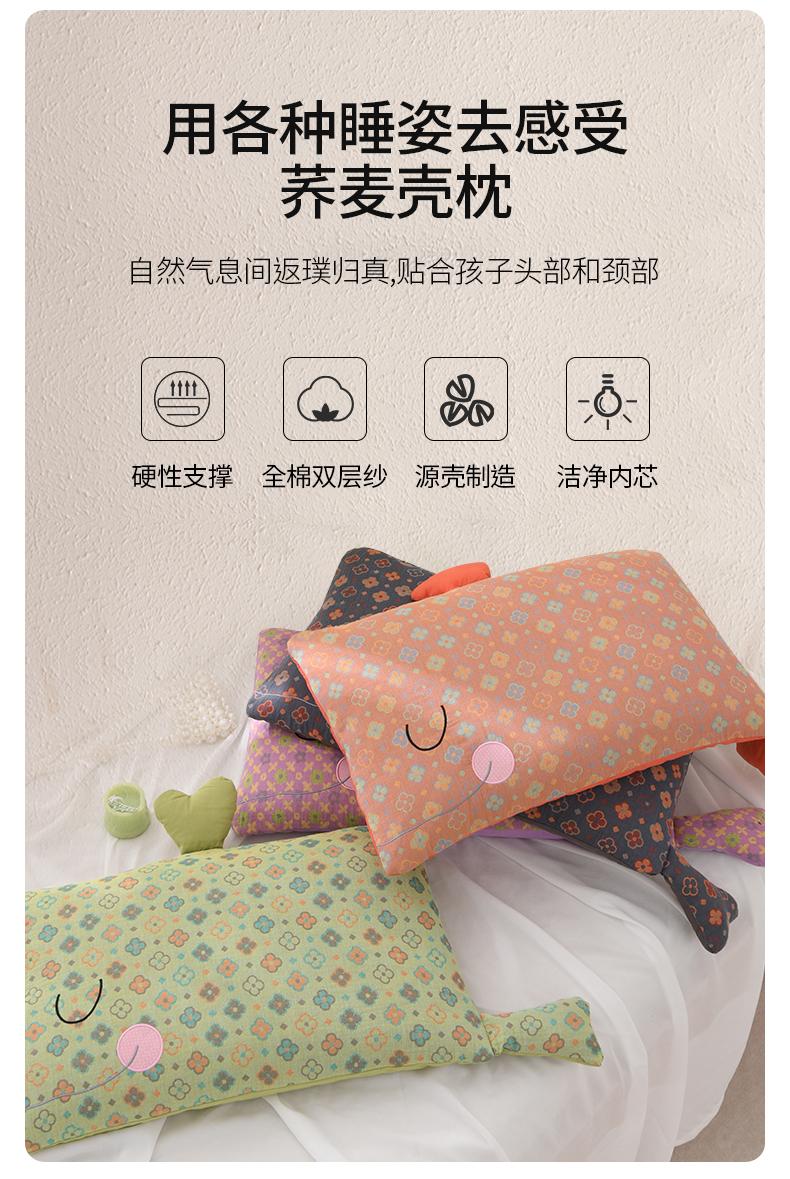 商品名称:(总)芯洲 2025新款荞麦双层纱卡通儿童学生枕家用枕头枕芯