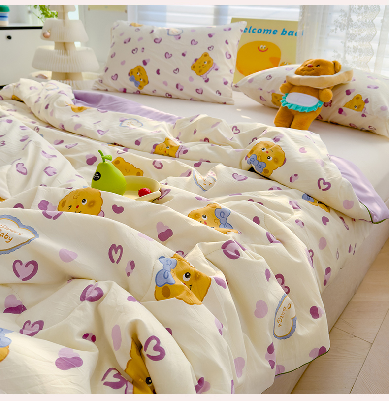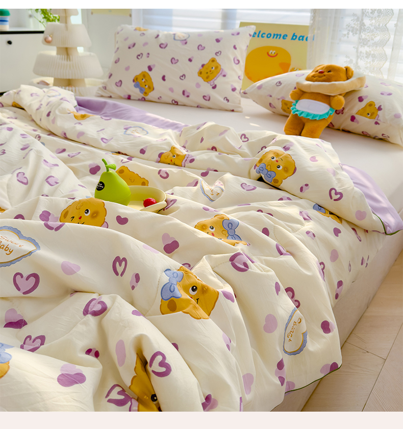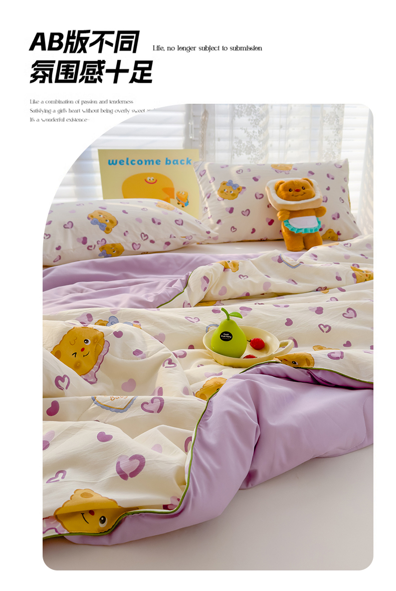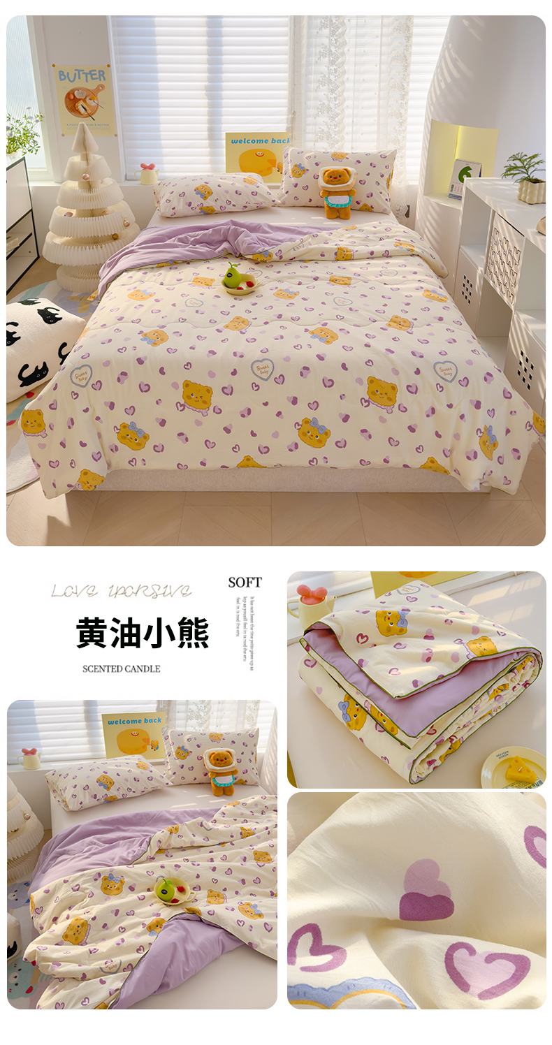 弗苓家纺 2025新款A类皱皱纱印花夏被 黄油小熊