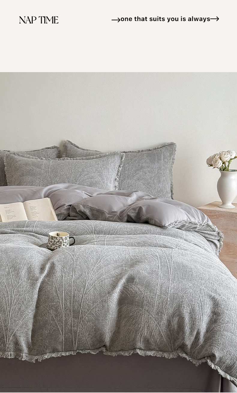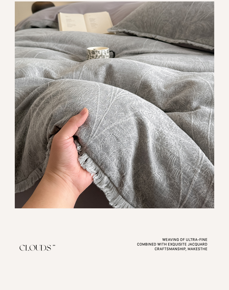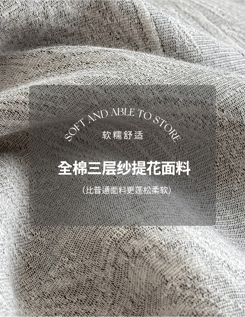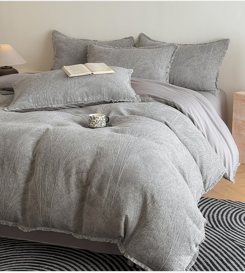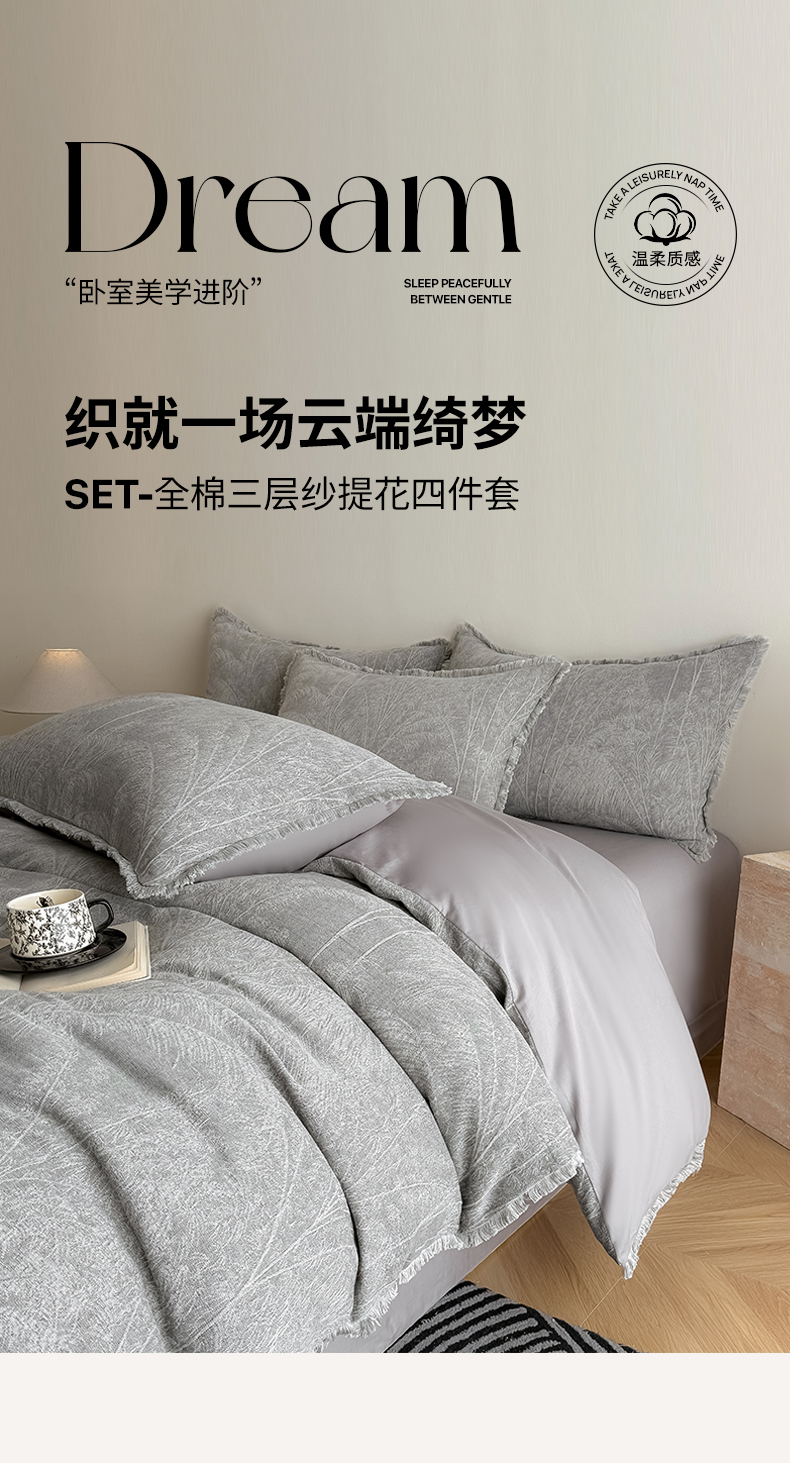 商品名称:极简 2025新款全棉三层纱提花四件套 西雅图-月灰