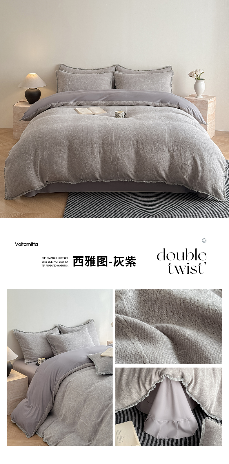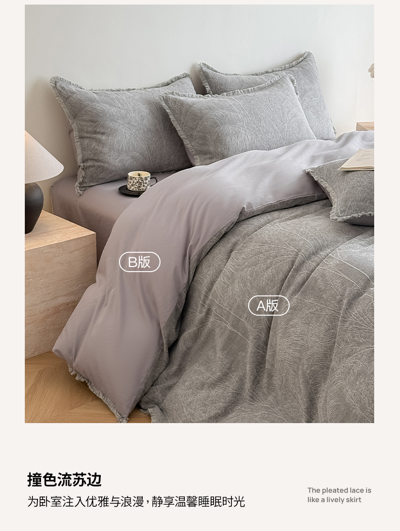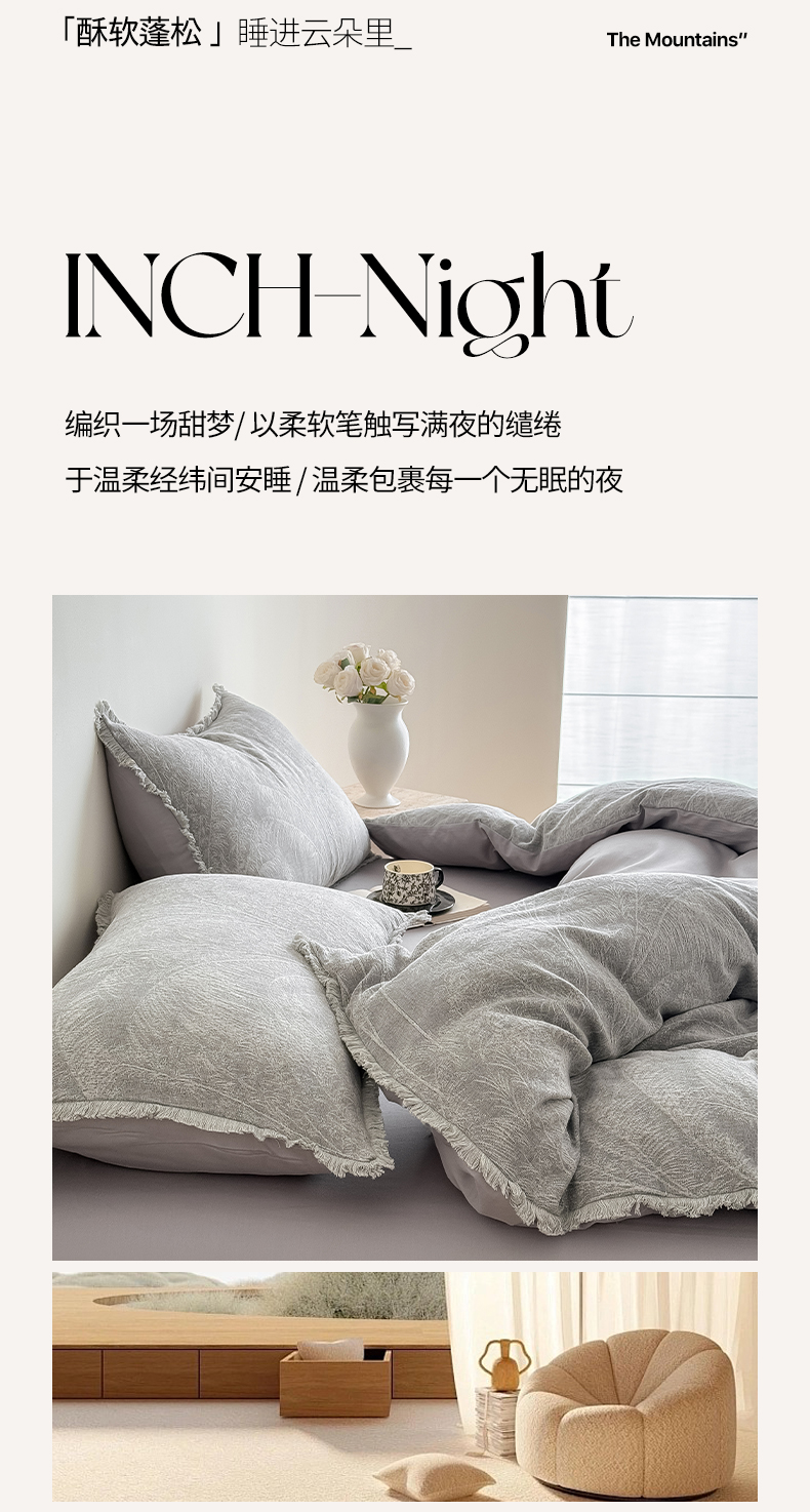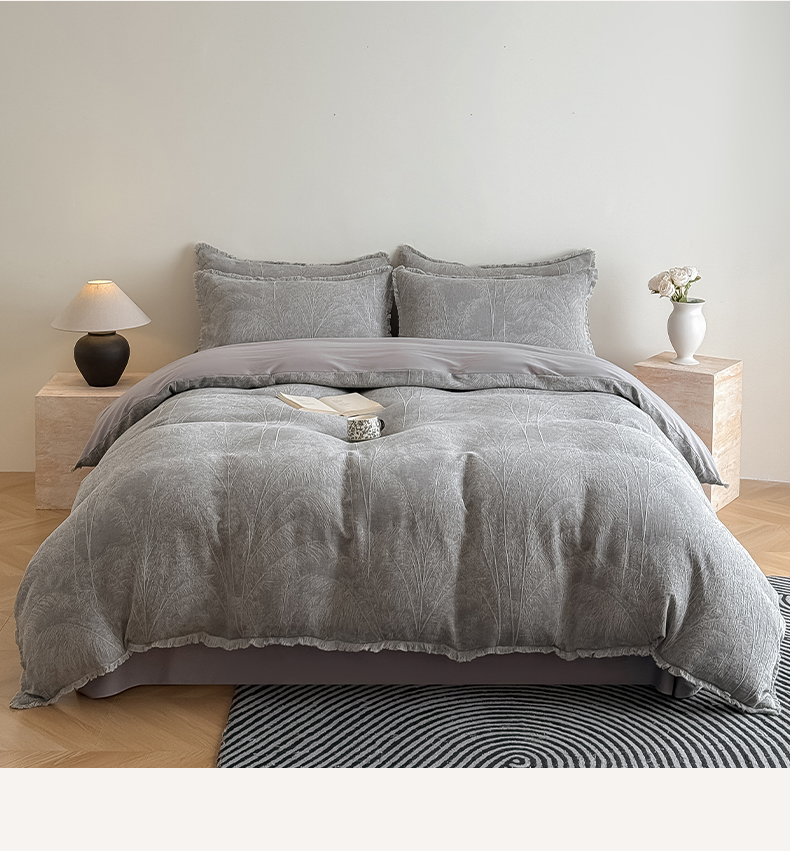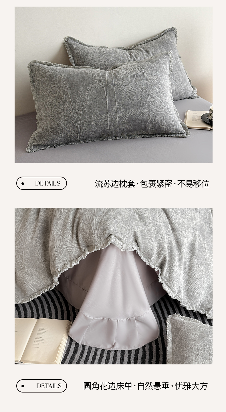 商品名称:极简 2025新款全棉三层纱提花四件套 西雅图-月灰