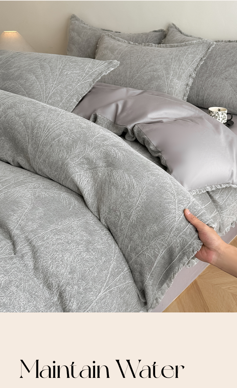 极简 2025新款全棉三层纱提花四件套 西雅图-月灰