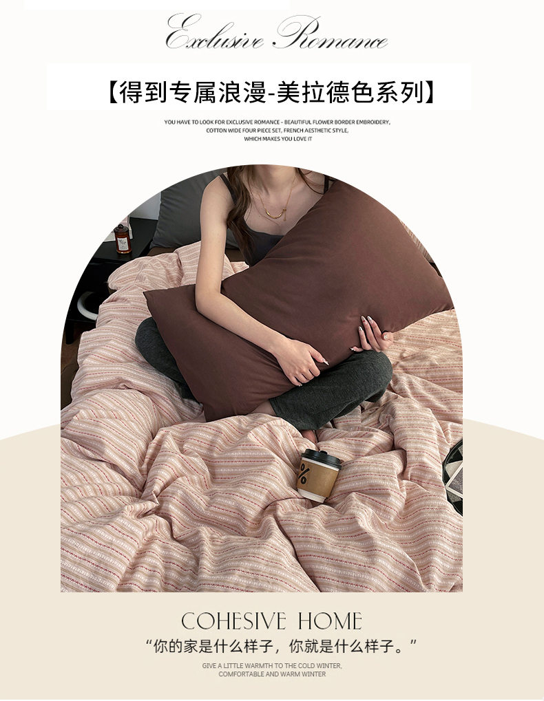 当前位置: 91家纺网 > 商品网购 > 床品套件 > 四件套 > 全棉普通四件套 > 羋多(原穆琪) 2025新款全棉色织提花人字斜四件套-美拉德系列 美拉德-墨染黛