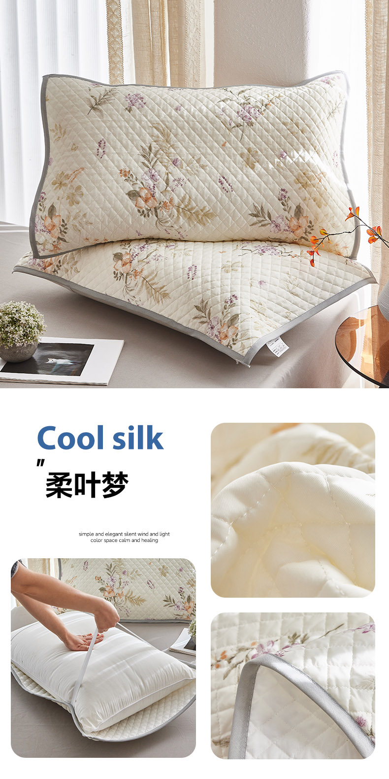 爱港家纺 2025新款夏季凉感丝绗缝夹棉绑带款枕巾 枕头巾 隔汗 隔脏 柔叶梦