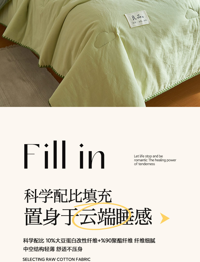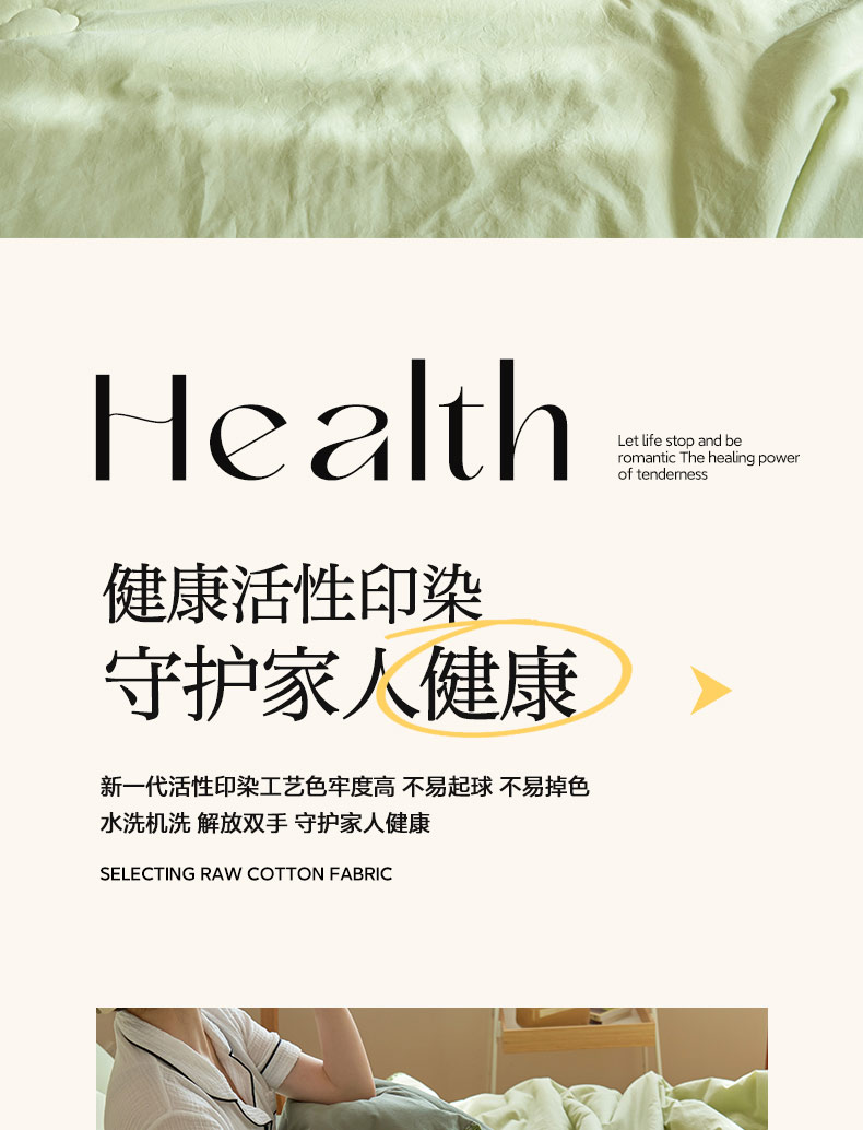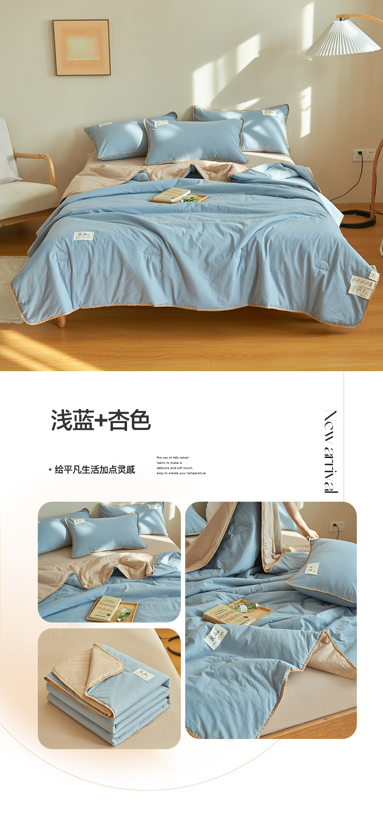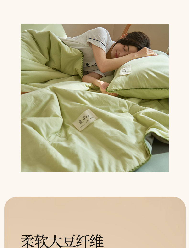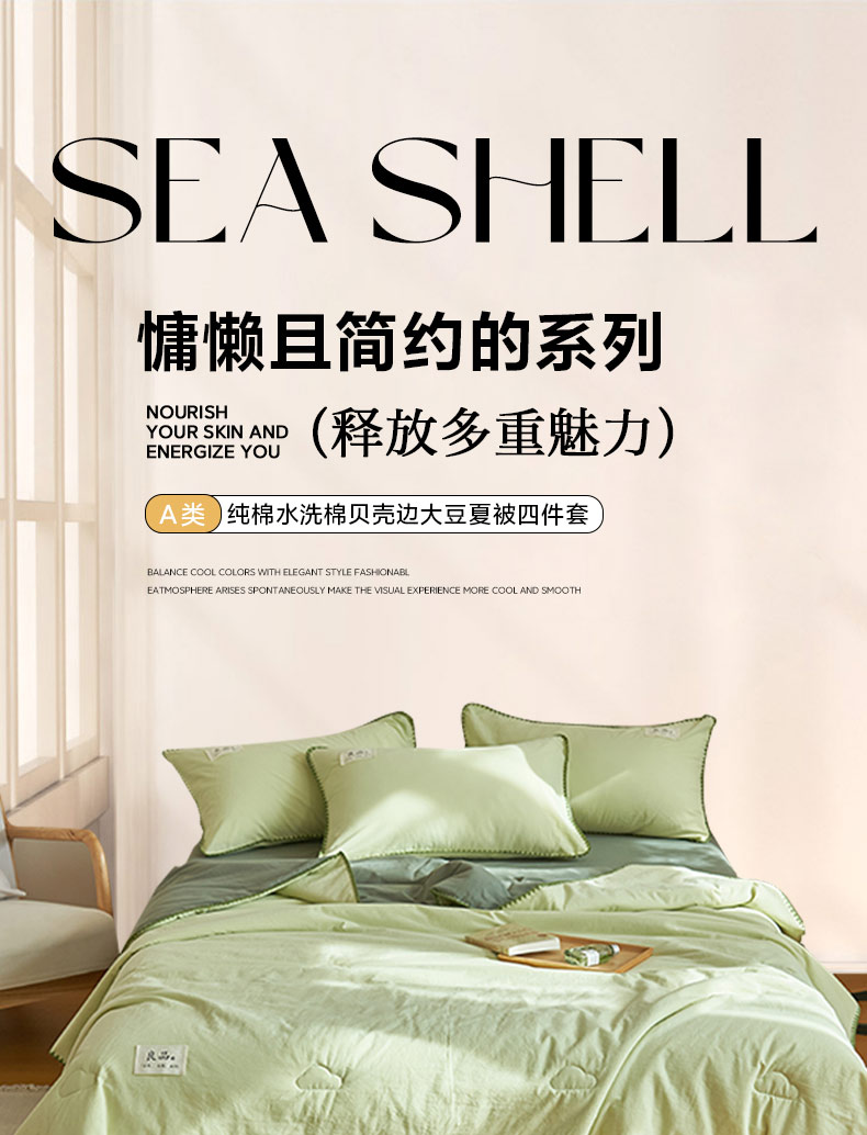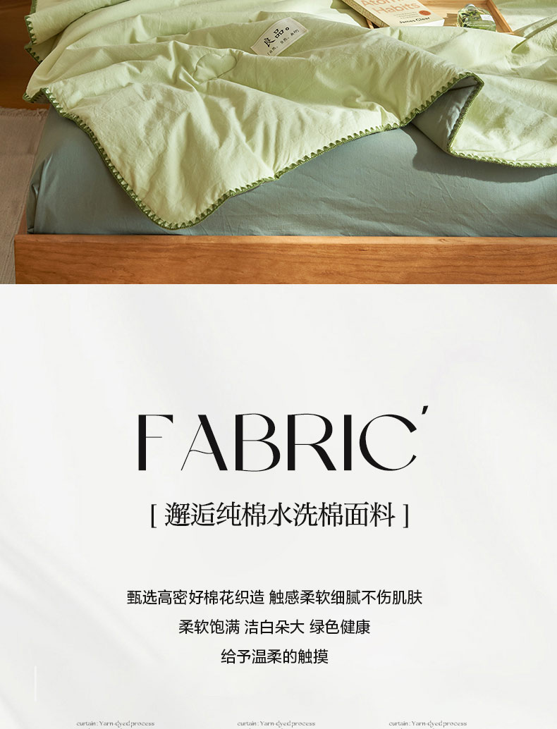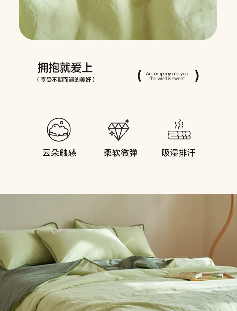 • 91家纺网 家纺一手货源 找家纺 寐绸家纺 2025新款纯棉水洗棉极简风贝克边大豆纤维夏被四件套 薄荷绿+墨子绿