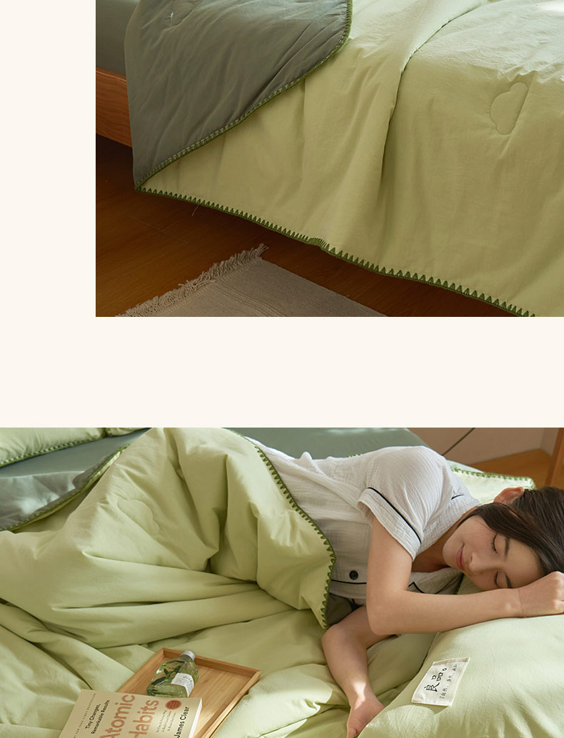 当前位置: 91家纺网 > 商品网购 > 被子 > 夏被 > 寐绸家纺 2025新款纯棉水洗棉极简风贝克边大豆纤维夏被四件套 薄荷绿+墨子绿