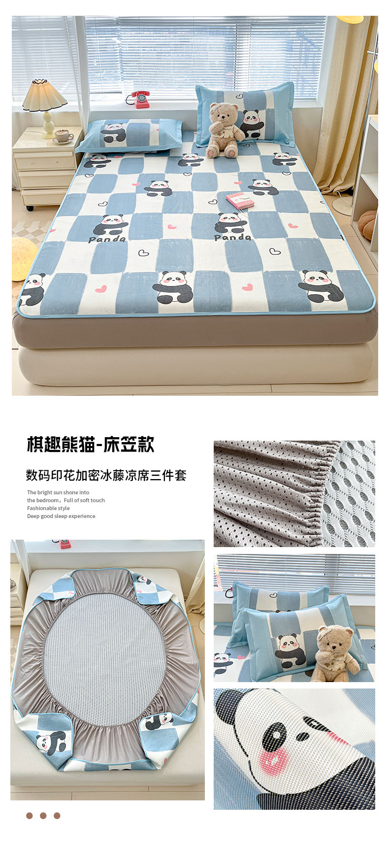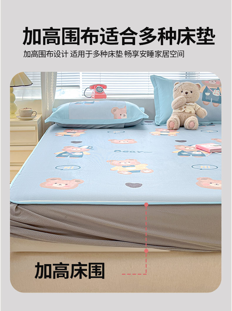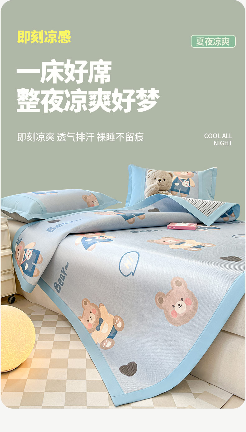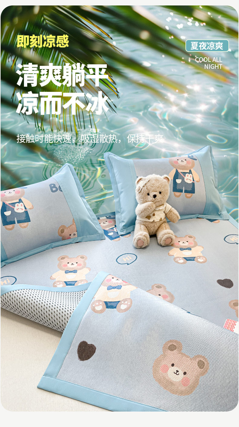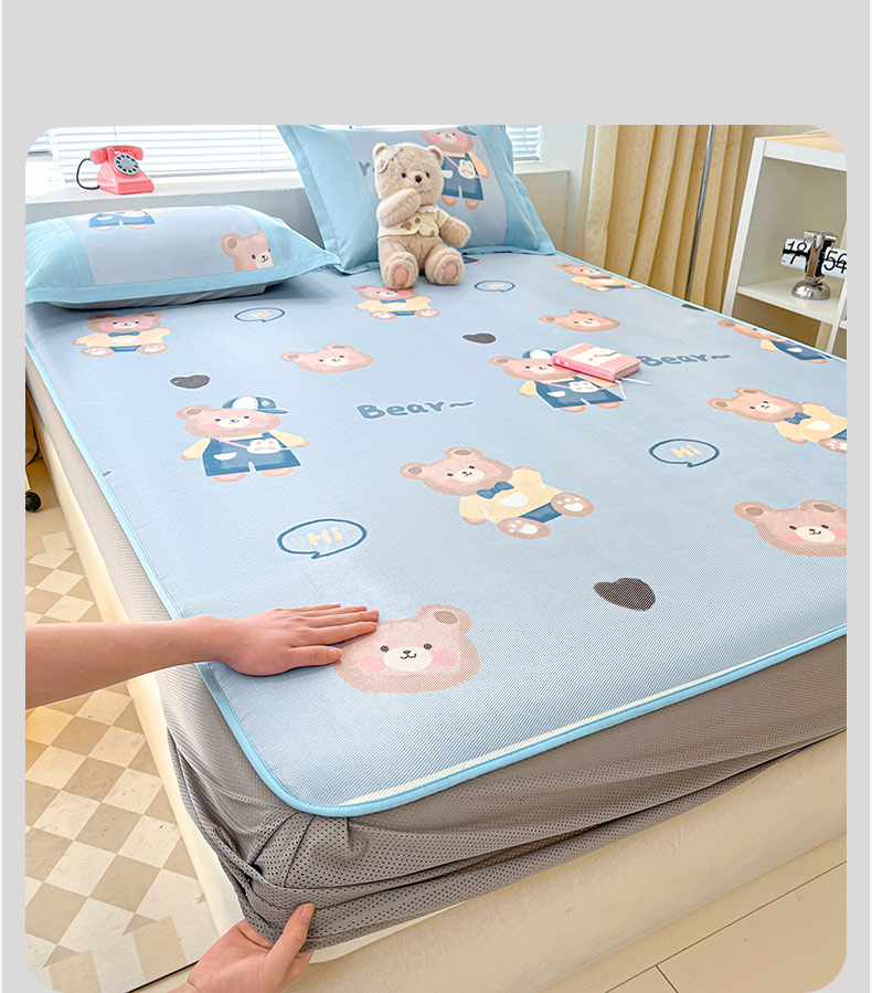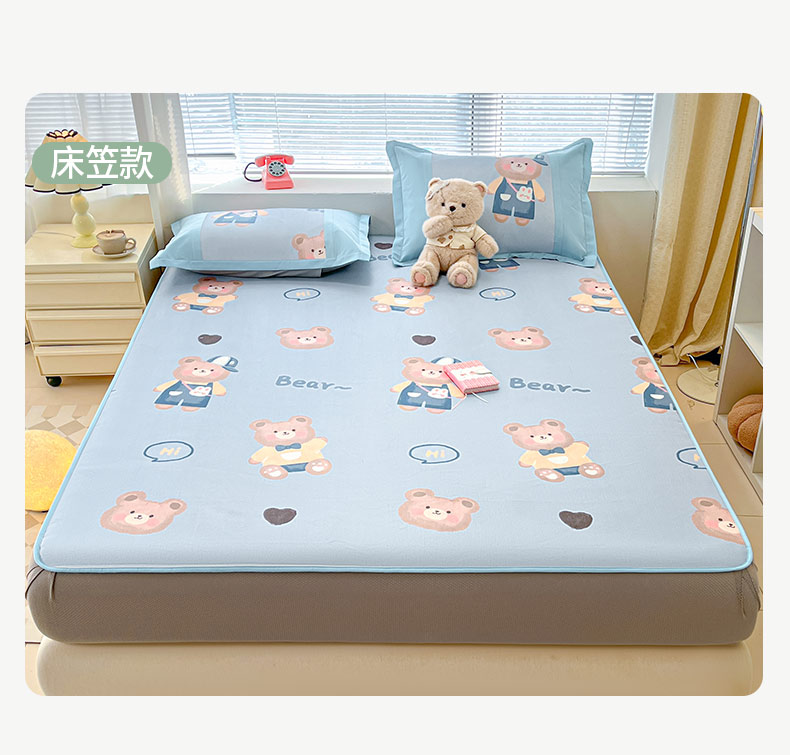 商品名称:鑫琪莱家纺 2025新款数码印花加密冰藤凉席三件套 床笠款-书院小熊